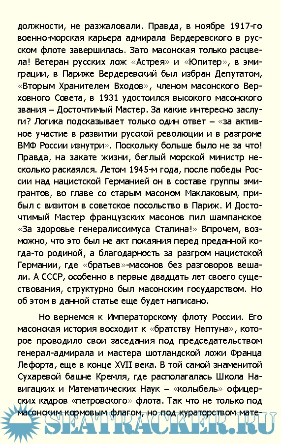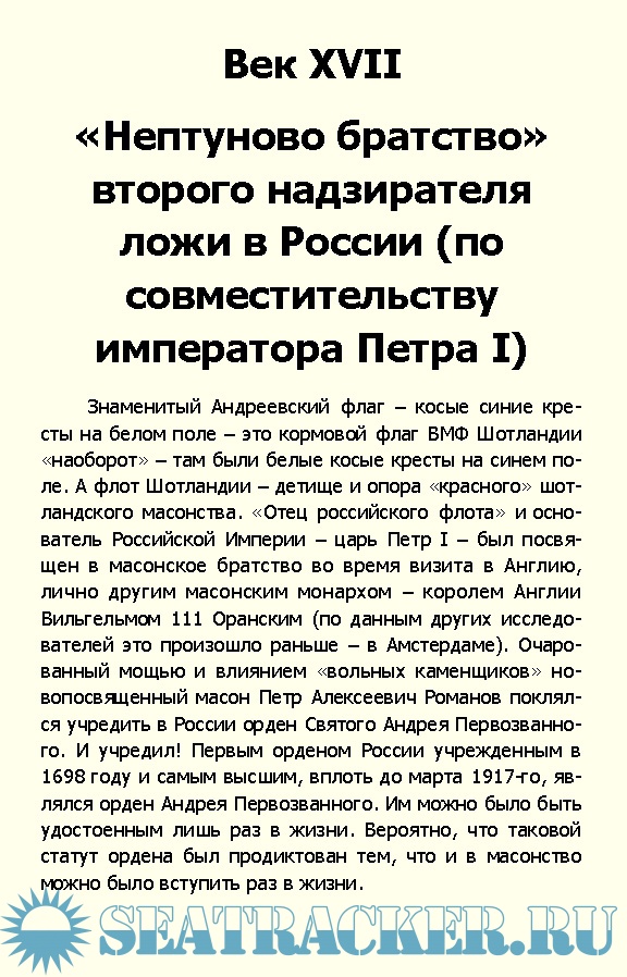 Описание: Историки русского флота упоминать о том, что известные флотоводцы, морские министры, Президенты Адмиралтейств-Коллегии, генерал-адмиралы и даже Государи императоры были посвящены в масонские ложи – не любят. А если где-нибудь об этом и напишут, то в контексте, что, дескать, все это форма досуга мистицирующих от скуки дворян.