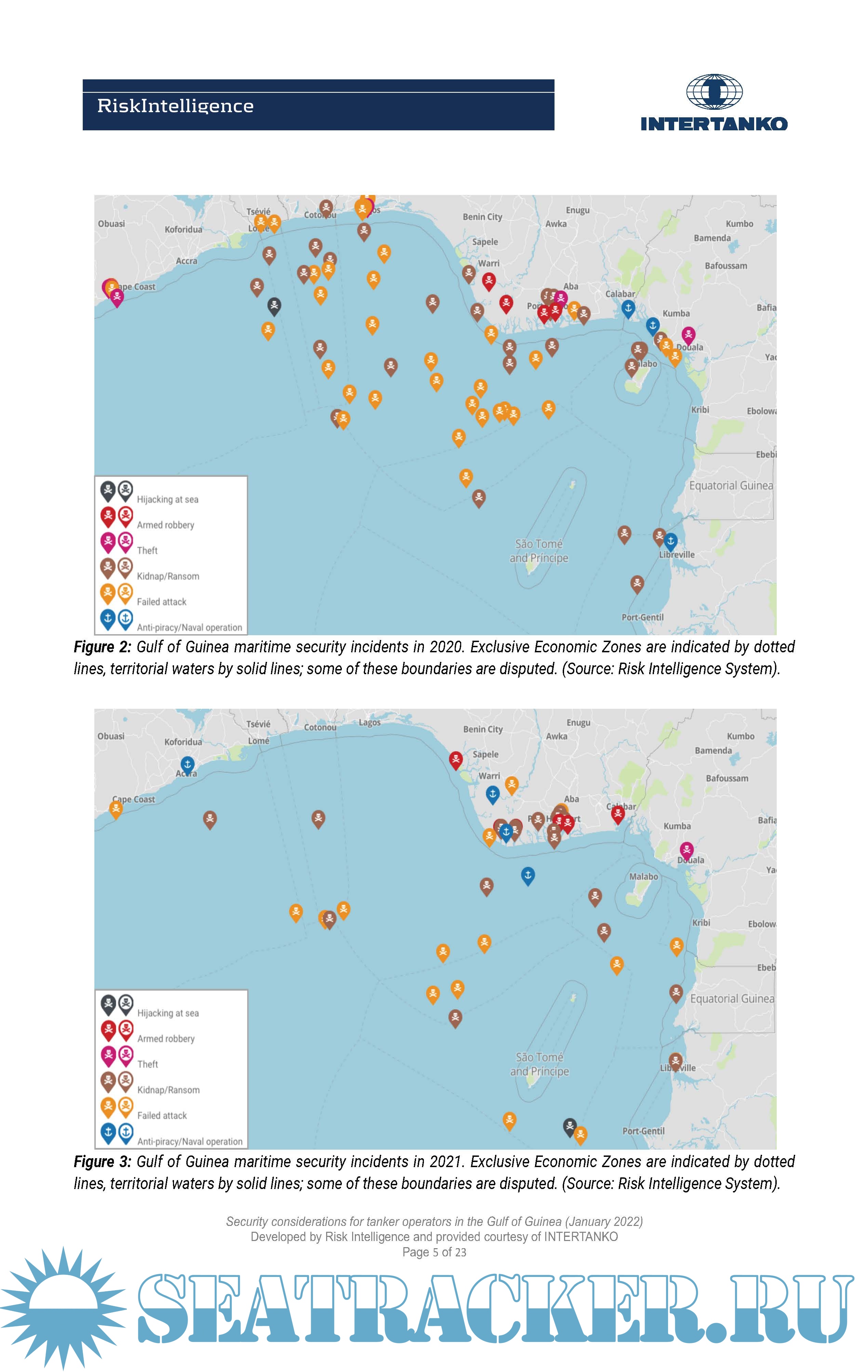 Description: Frequent attacks against merchant ships in the Gulf of Guinea, often involving tankers, continue to be a problem for tanker operators. Despite a drop in the number of attacks in 2021 compared with the previous year, the threat level for tanker vessels of all types remains significant. Several successful and attempted kidnap-for-ransom attacks between October and December, including attacks at significant distances from the coastline, have underlined the issue. Overall, the maritime security situation in the Gulf of Guinea remains fragile.