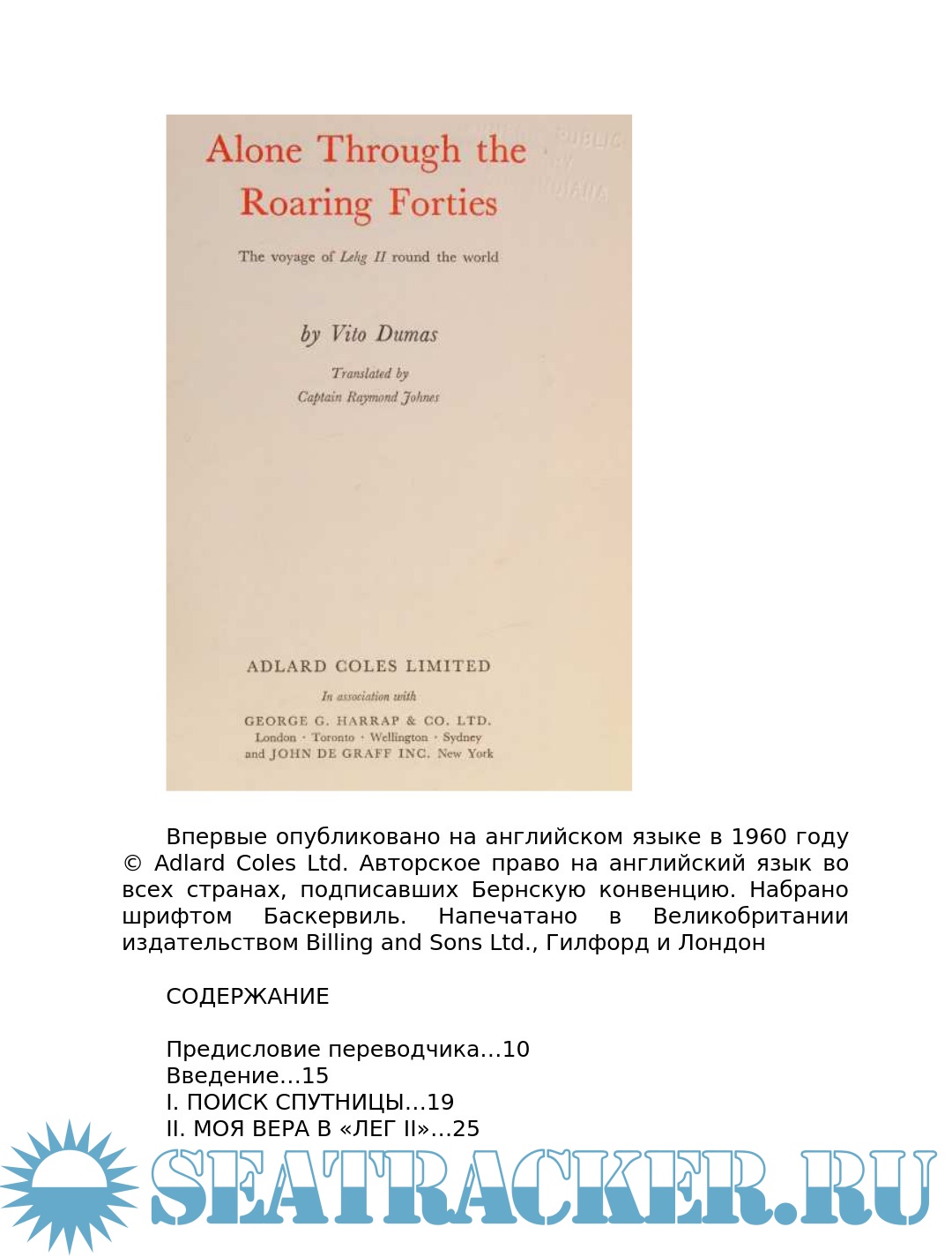Издательство: Перевод любительский. — С оригинала: Alone Through the Roaring Forties. London: Adlard Coles Ltd. 1960. — 190 p.