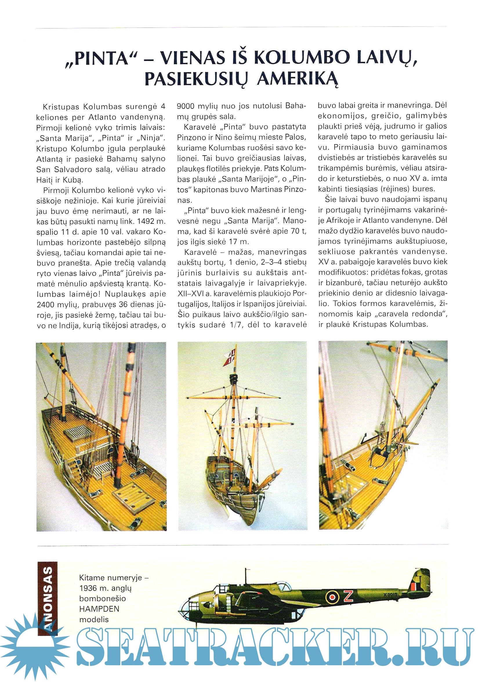 Год выпуска: 2004 Язык: Литовский Автор: Darius Gilinis Жанр: Чертеж, Кто действительно занимается судо- (и не только) моделизмом :) Издательство: Technikos Virtuozas Формат: JPEG Качество: Изначально компьютерное (eBook) Количество страниц: 18 Описание: 18 листов цветных выкроек и инструкций для изготовления бумажной модели каравеллы Колумба PINTA