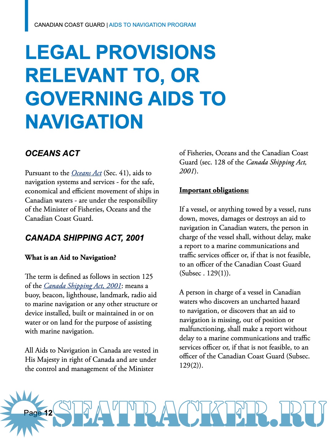 Description: The Canadian Coast Guard is pleased to release the 2023 edition of the Canadian Aids to Navigation System publication. This edition replaces the 2011 edition as the new standard for aids to navigation in Canada.