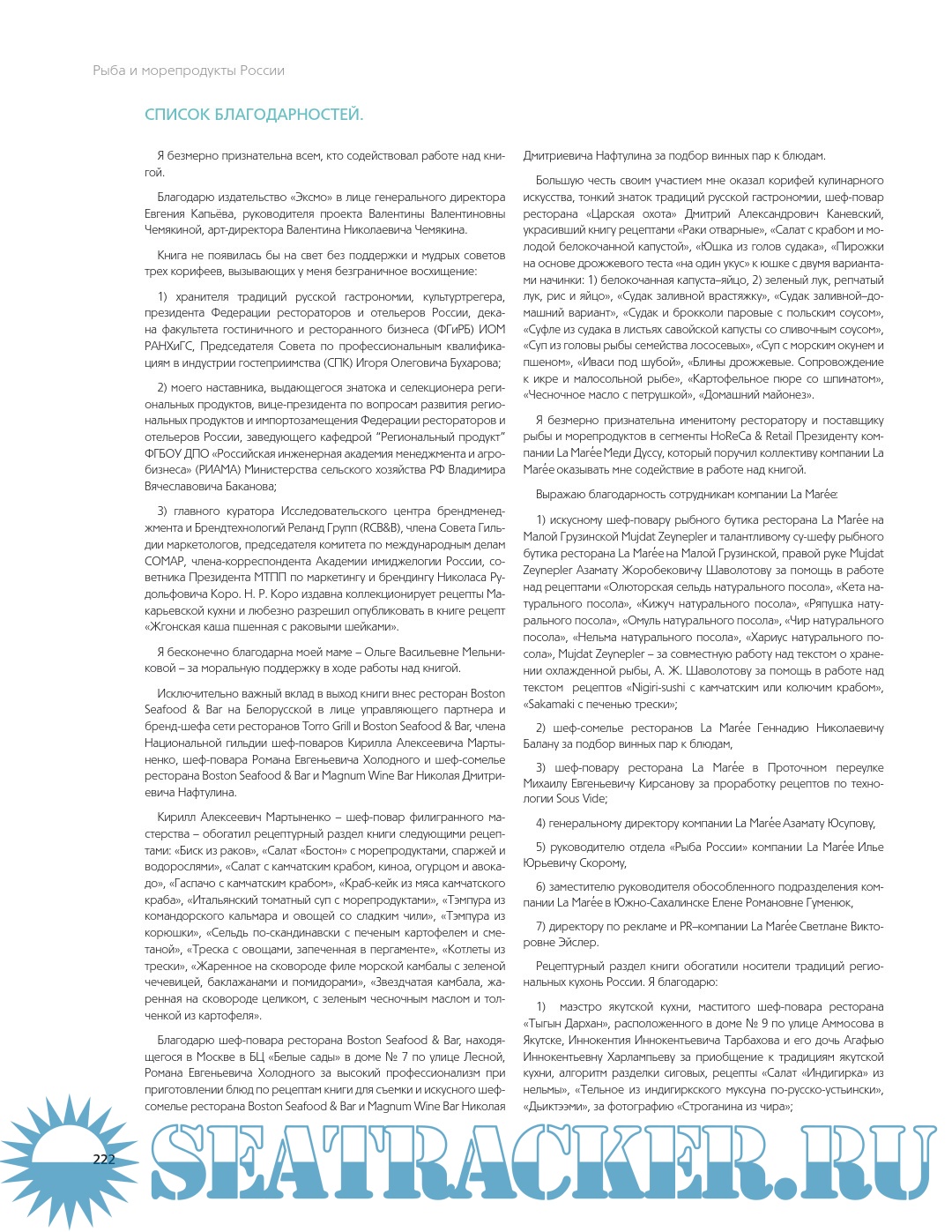 В дополнение к авторским блюдам шеф-повара московских и региональных ресторанов, специализирующихся на меню из российской рыбы, предоставили свои рецепты для книги.