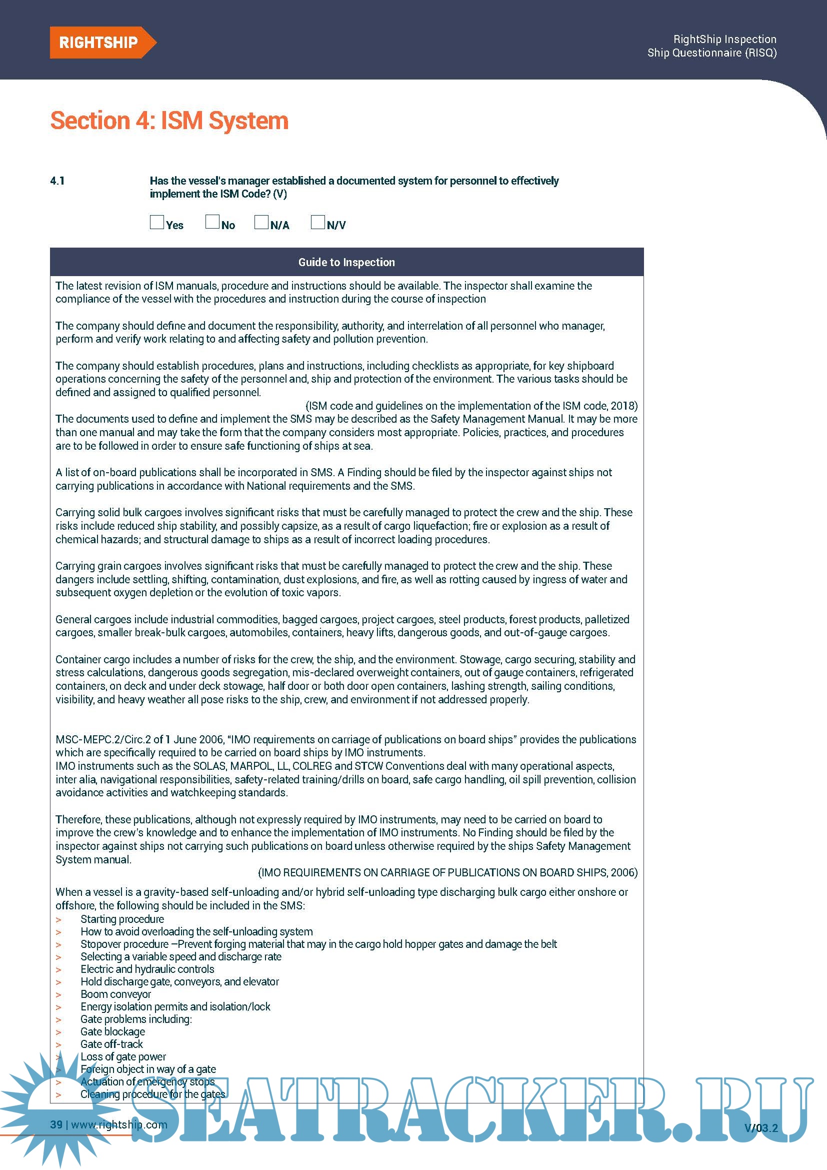 RightShip Inspection Ship Questionnaire (RISQ) 3.0 - RightShip [2023, PDF]