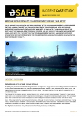BSAFE INCIDENT CASE STUDY 29: BENZENE VAPOUR FATALITY FOLLOWING UNAUTHORISED TANK ENTRY. While a ship was underway after discharging benzene, a crew member entered a cargo tank before enclosed-space entry procedures had been authorised and before confirming the atmosphere was safe. He was later found collapsed at the bottom of the tank and, despite rescue efforts, did not survive.