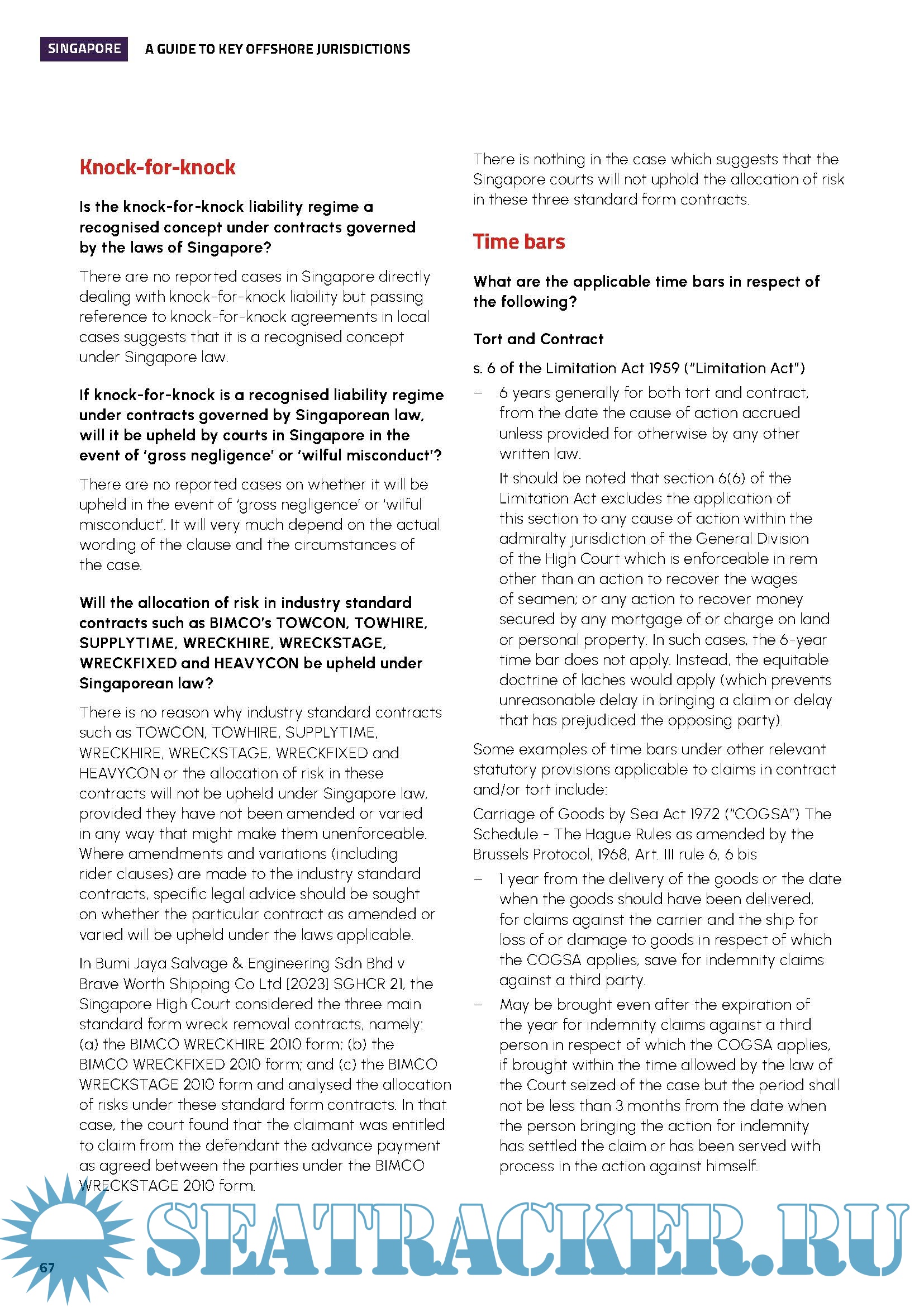 - the enforceability of knock-for-knock provisions in a contract and whether exceptions for gross negligence and/or wilful misconduct are recognised concepts under local law; and