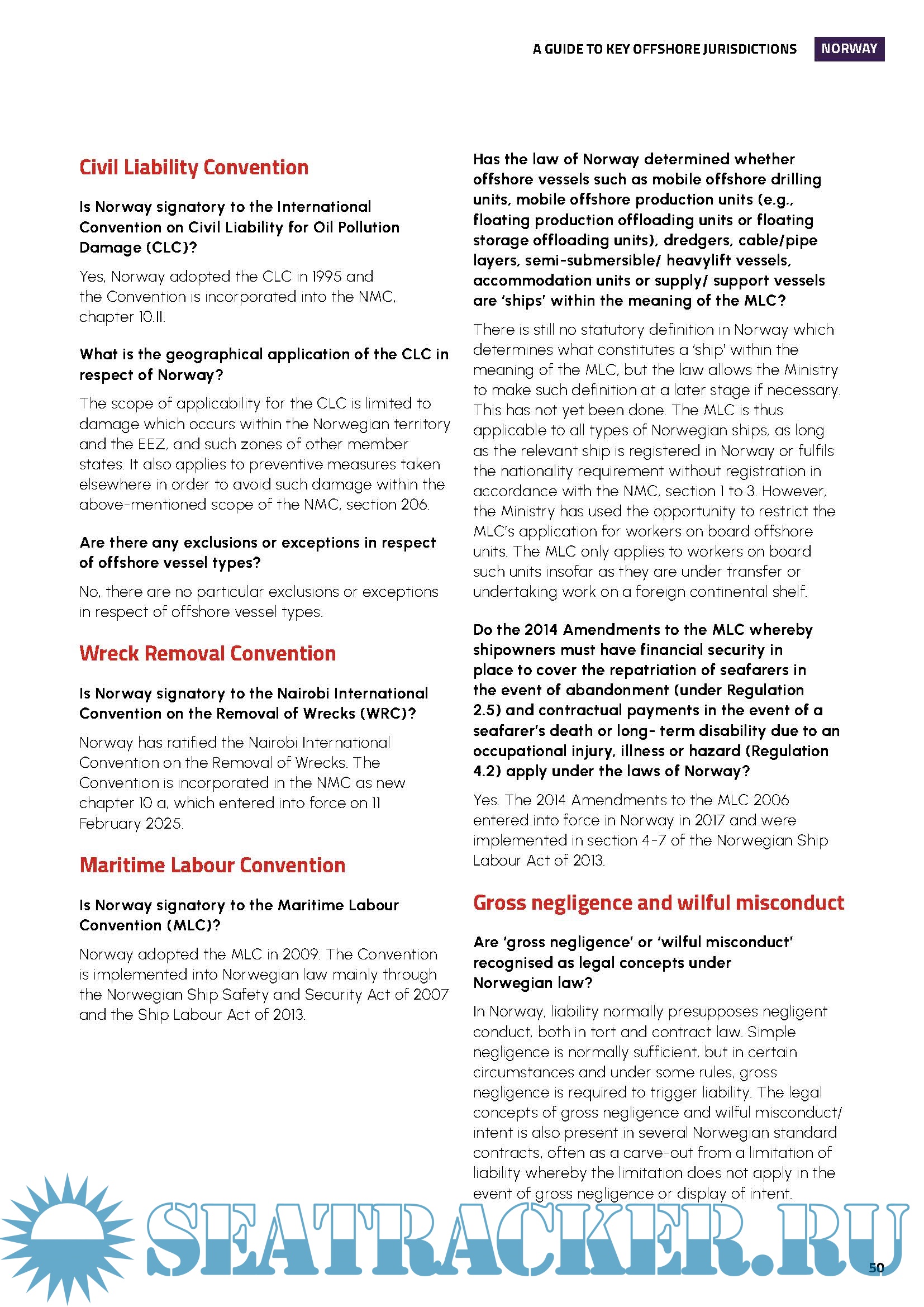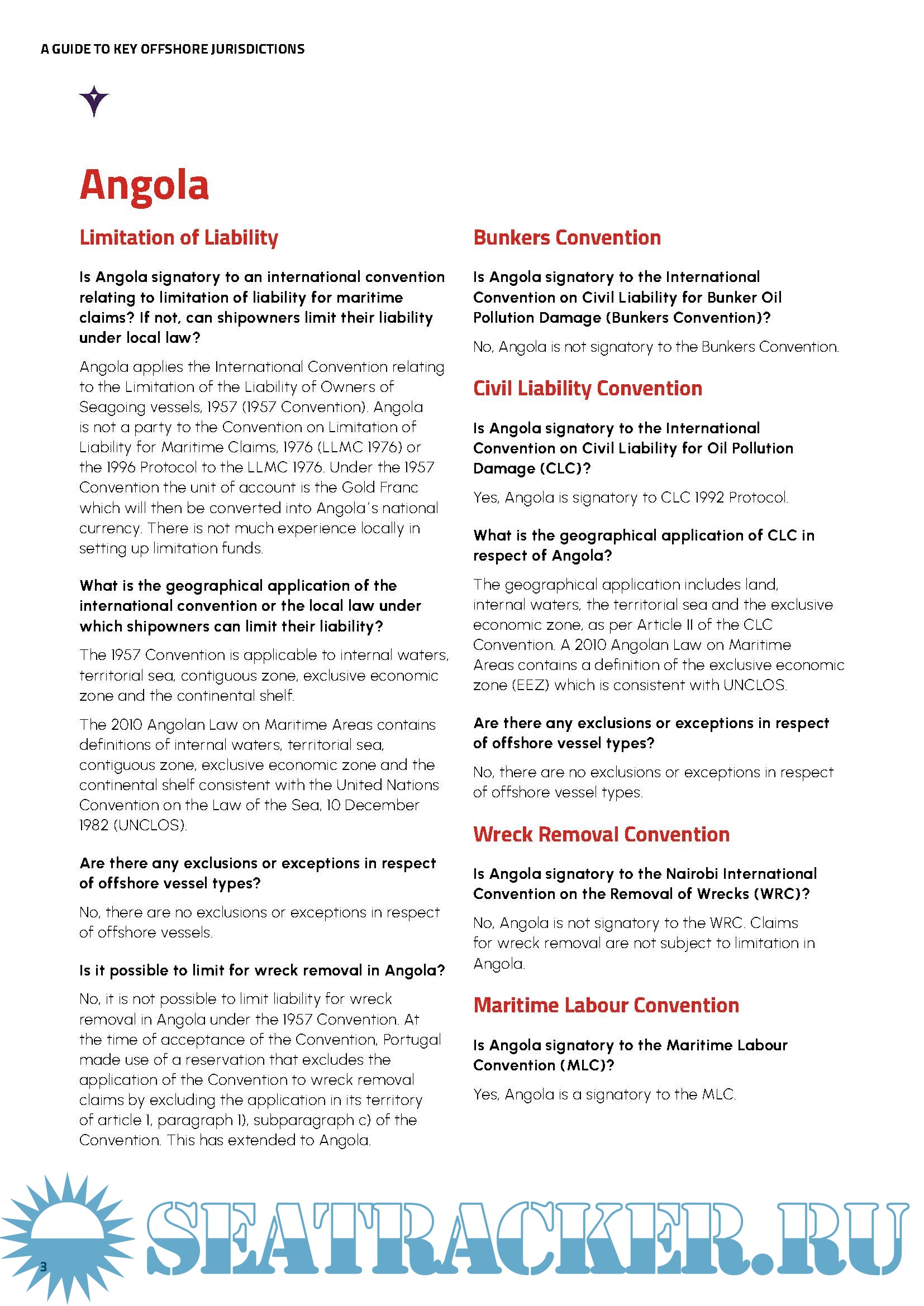 - how international conventions such as the Bunkers Convention, CLC Convention, Wreck Removal Convention, Maritime Labour Convention or any related domestic legislation are applied and their geographical scope;