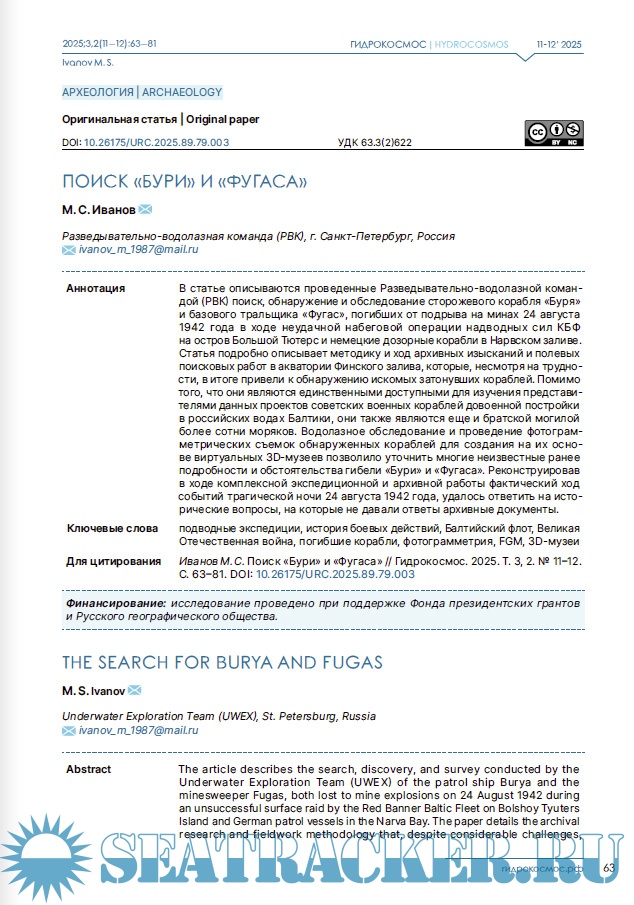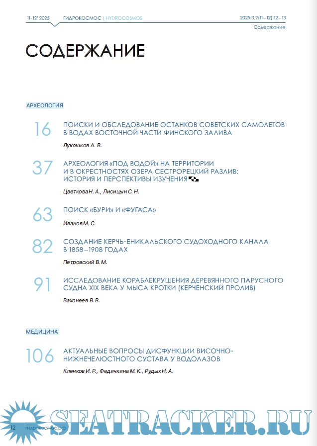 Описание: Научный журнал «Гидрокосмос» — первое в России междисциплинарное издание о подводных исследованиях. Он задуман как площадка для обсуждения научных проблем изучения свидетельств взаимодействия людей с морями, озерами и реками, исследованиям смежных занятий и ремесел, а также ныне затопленных участков суши. В повестку издания входят теоретические и методологические вопросы подводных исследований; проблемы морской археологии, связанные с консервацией и реставрацией предметов, обнаруженных в воде; вопросы сохранности объектов культурного наследия; вопросы технического, медицинского, организационного и юридического обеспечения подводных археологических работ. Журнал «Гидрокосмос» создан как инструмент для укрепления сообщества теоретиков и практиков подводных исследований, для обеспечения синергии в дальнейшем развитии отрасли в России.