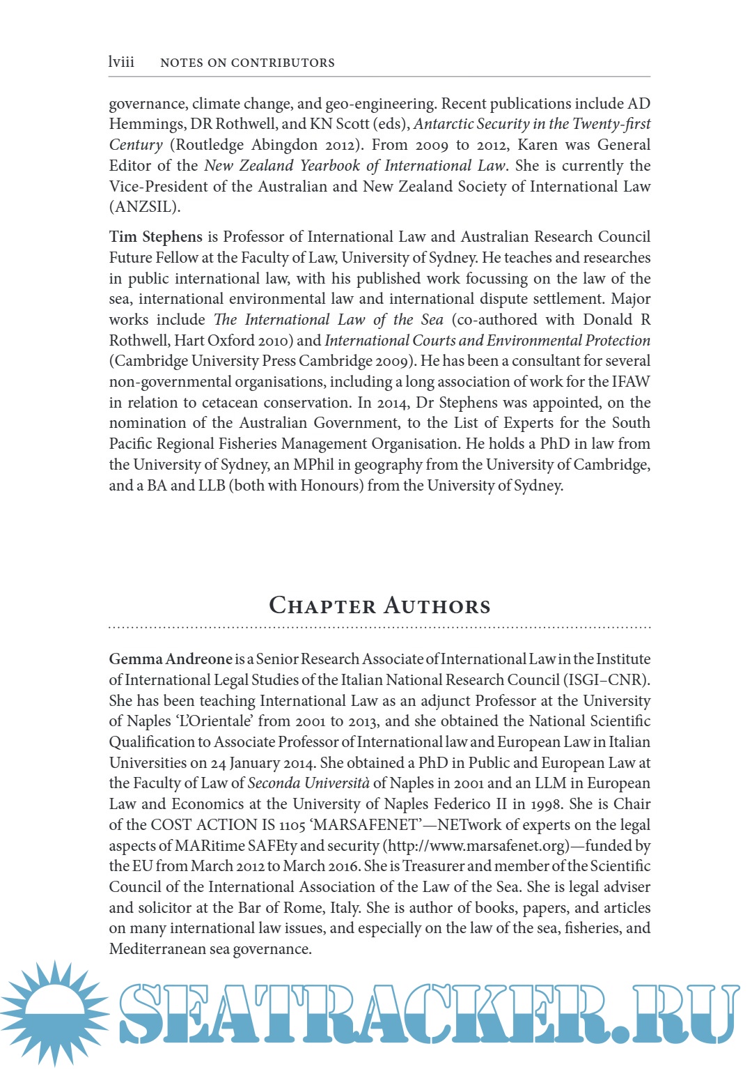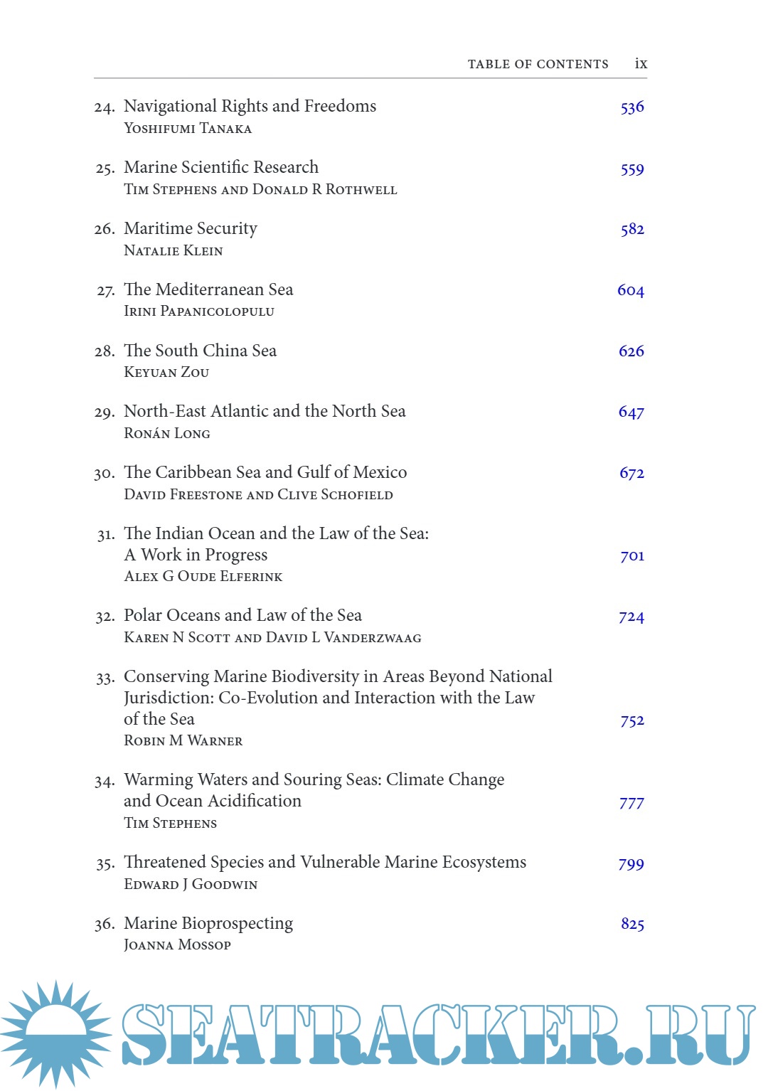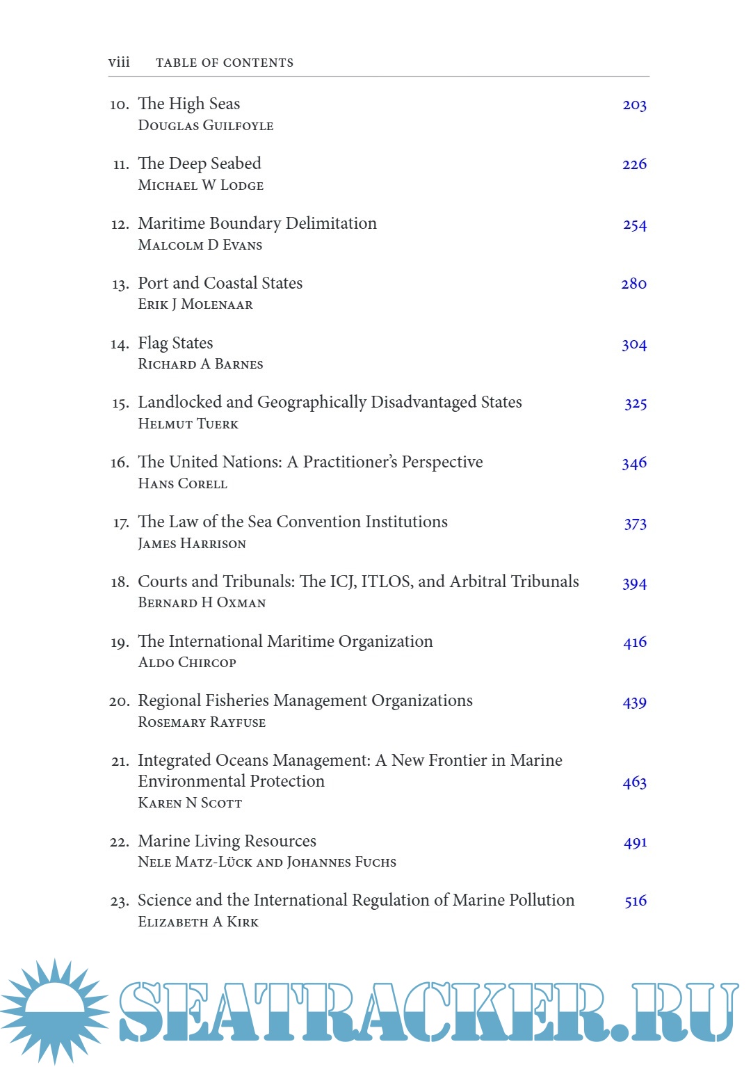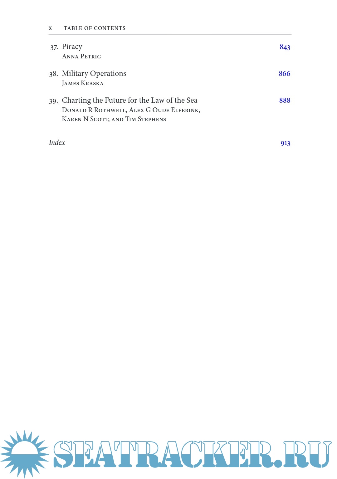 Description: This Handbook comprises 39 chapters that are arranged to guide the reader from an historical introduction to the law of the sea, through the principal maritime zones and key actors, to selected regional developments and cross-cutting issues such as security, resource management, and scientific research. Authors were encouraged to consider future challenges and developments in their assessment of individual topics and to identify future research agendas. As this was very much a collaborative project, authors also coordinated with one another in order to avoid unnecessary overlaps. In the style of Oxford Handbooks, each chapter is a free-standing scholarly essay, which is nevertheless intended to support the broader objectives of this project: a coherent and comprehensive exposition of the modern law of the sea.