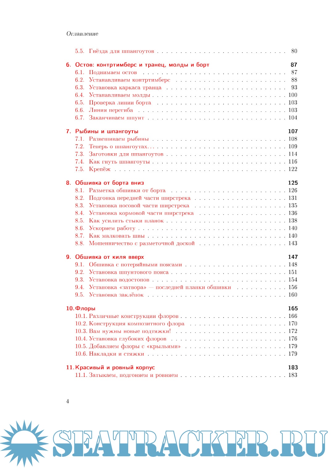 Книга охватывает формы, балласт, киль, балки настила, процесс обшивки, потолки, палубный каркас, люки, переборки, рангоут и руль, а также обсуждает полезные инструменты.