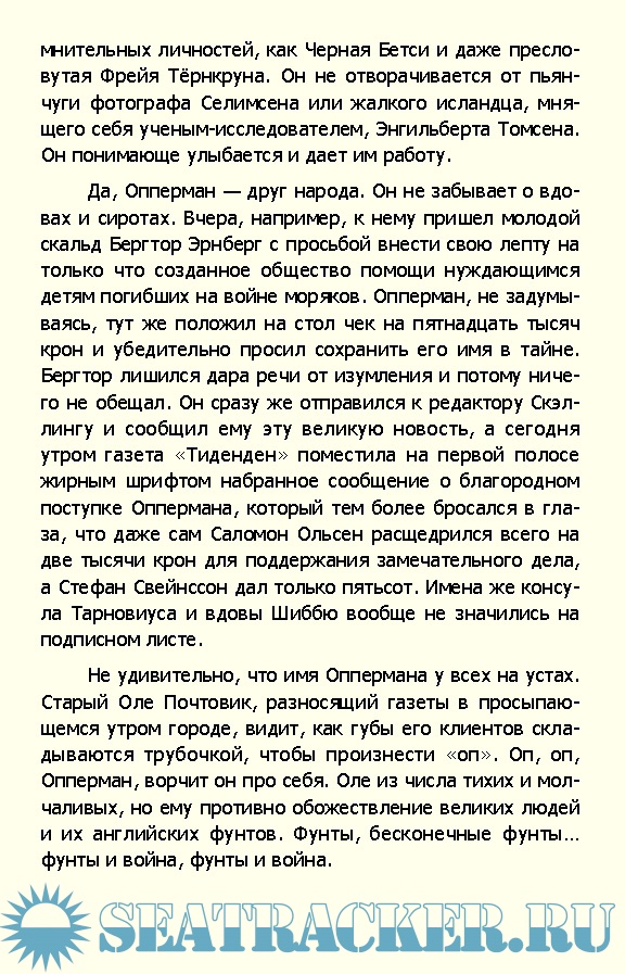 Год выпуска: 1988 Язык: Русский Автор: Вильям Хайнесен Жанр: Художественная литература Издательство: Маяк Издание: Морская библиотека. Книга 52 Формат: FB2 Качество: Изначально компьютерное (eBook) Количество страниц: 419 Описание: Творчество Вильяма Хайнесена - одно из самых самобытных явлений в литературе современной Скандинавии. Хайнесен пишет по-датски, его произведения входят неотъемлемой частью в общую картину литературной жизни Дании XX века, насквозь пронизаны национальной спецификой. Действие романа "Черный котел" развертывается в период второй мировой войны и изображает коренные изменения, вызванные в жизни Фарерских островов бурями, потрясавшими "большой мир". На Фарерских островах высаживаются английские войска и постепенно развиваются коммерческие контакты с Англией. Исконное занятие моряков островов - ловля рыбы, становится чрезвычайно опасным и одновременно очень прибыльным делом. Подрываются на минах суда, гибнут люди, а правительство доставку рыбы в Англию окружает ореолом "подвига во имя родины". Роман призван разоблачить обман, восстановить подлинную картину событий военного времени.