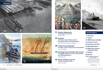 Quarterly Sea History Magazine - the Art, Literature, Adventure, Lore and Learning of the Sea is published quarterly by the National Maritime Historical Society. Our seafaring history comes alive in the pages of Sea History, the National Maritime Historical Society’s quarterly magazine. The pre-eminent journal of advocacy and education in our field, Sea History covers the world of maritime museums, sail training, key events and people in our maritime past, and the stories of everyday sailors past and present, and marine archaeology, with a national focus and an international scope, as well as Others regular features.