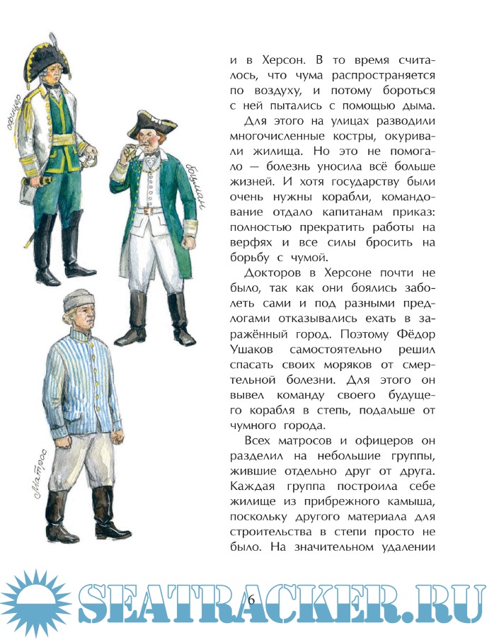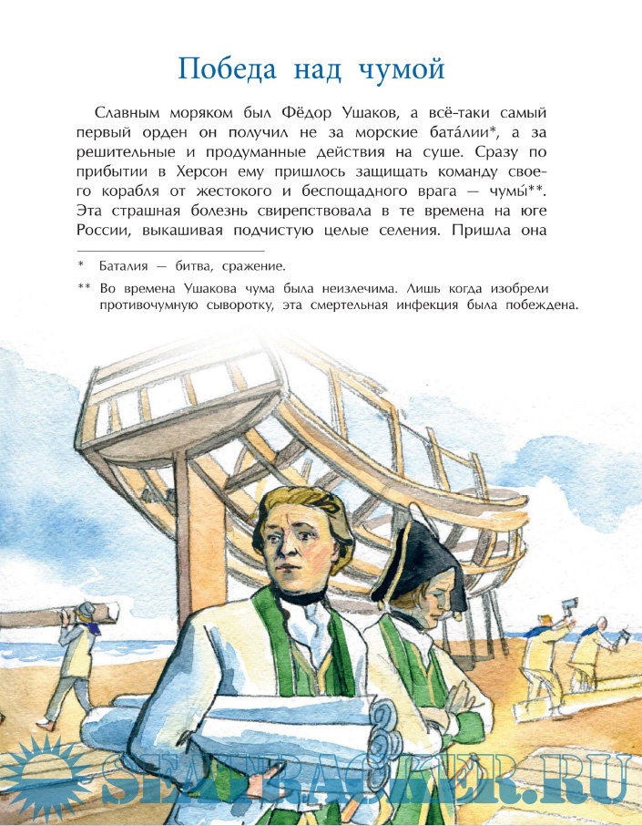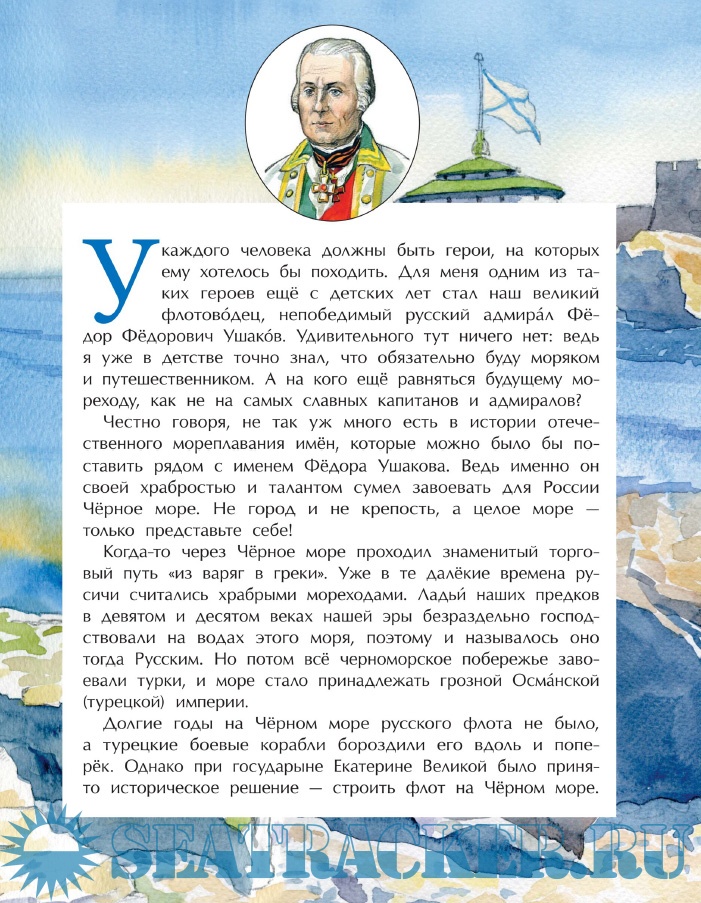 Описание: На кого ещё равняться будущему мореходу, как не на самых славных капитанов и адмиралов? Автор этой книги, известный путешественник Фёдор Конюхов, с детских лет чтит великого русского флотоводца, адмирала Фёдора Фёдоровича Ушакова, который своей храбростью и талантом сумел завоевать для России Чёрное море. Это история о человеке, который по-настоящему любил людей, заботился о них и даже к врагам был великодушным и милосердным.