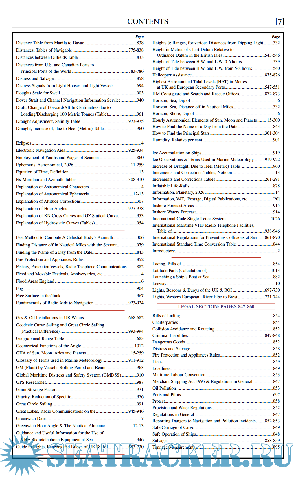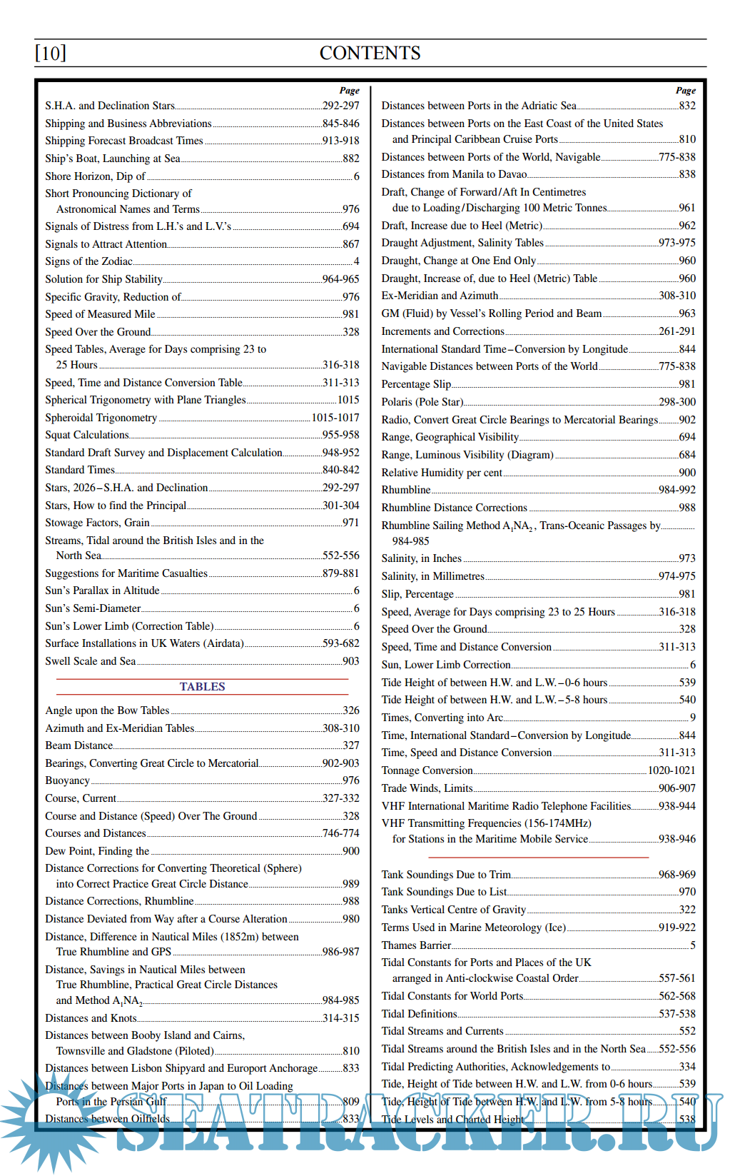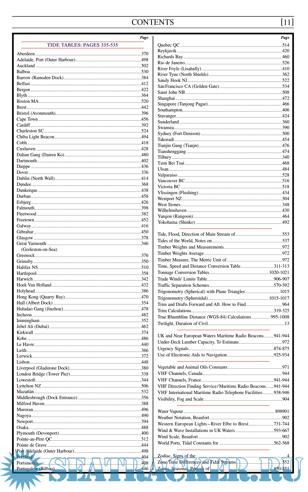 • VII Miscellaneous Information covering Stability, Buoyancy, Celestial, Sailings and Navigation. The Pilotage Information section has been revised to conform with notices issued by Admiralty, Hydrographic Authorities and Port Authorities.