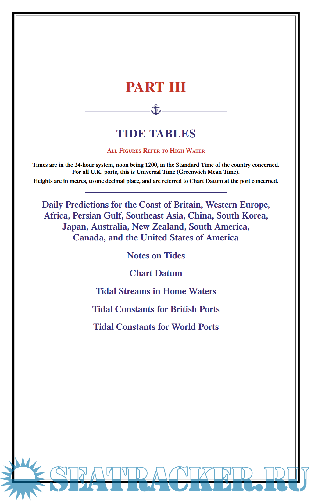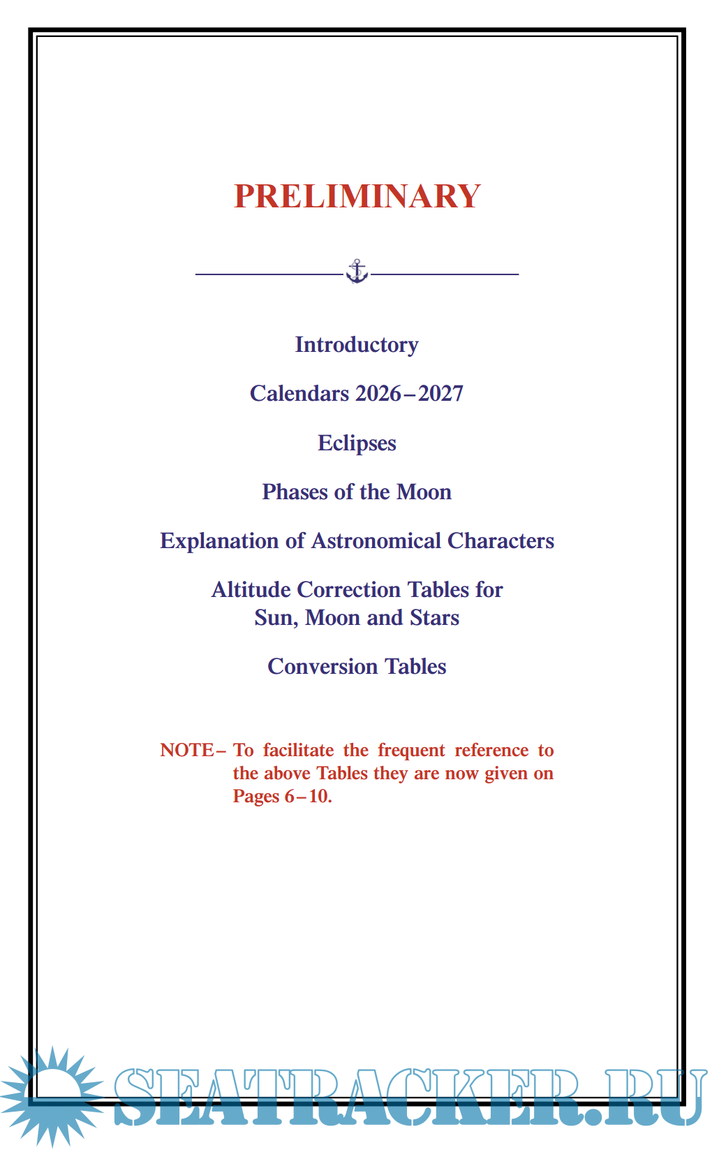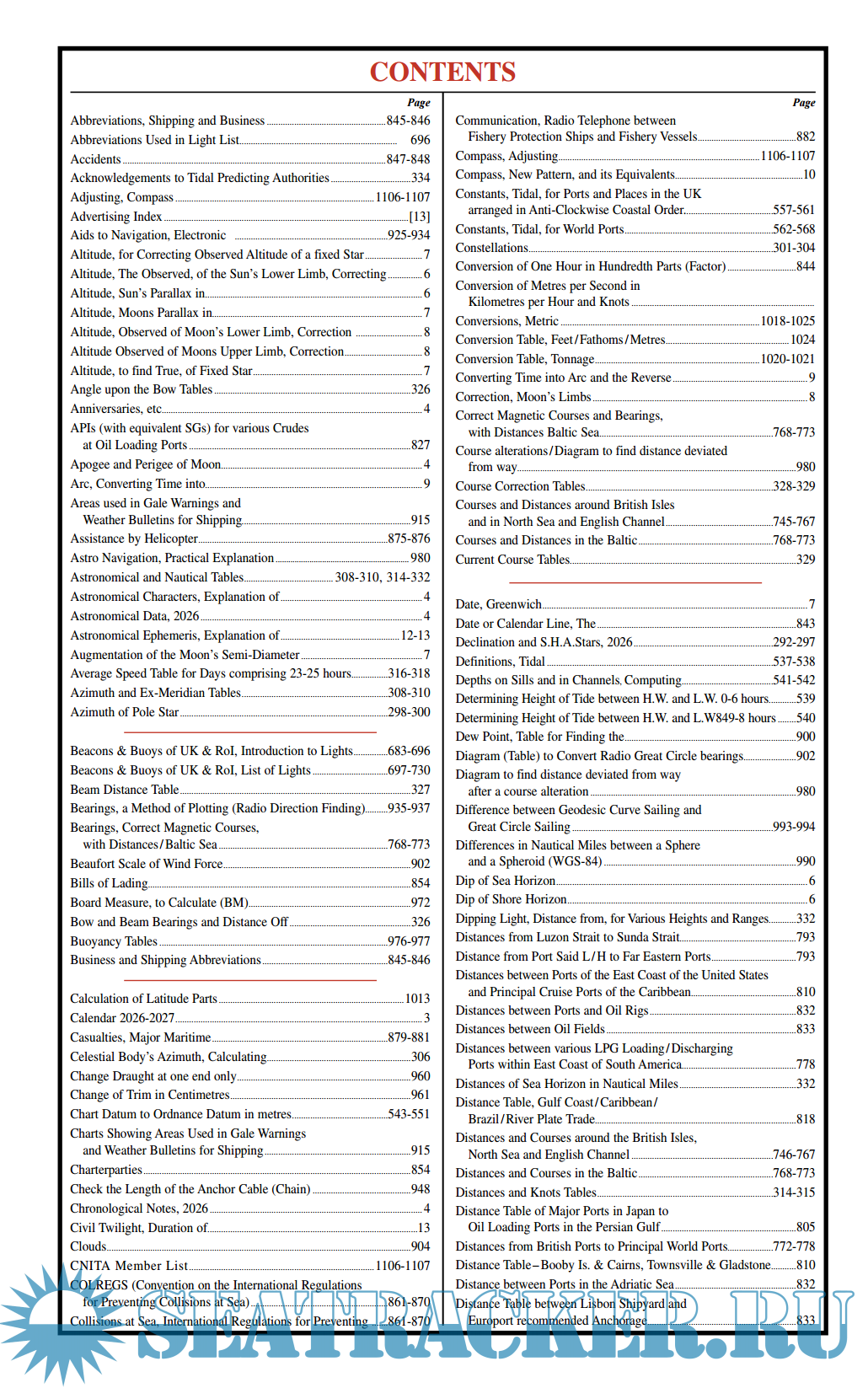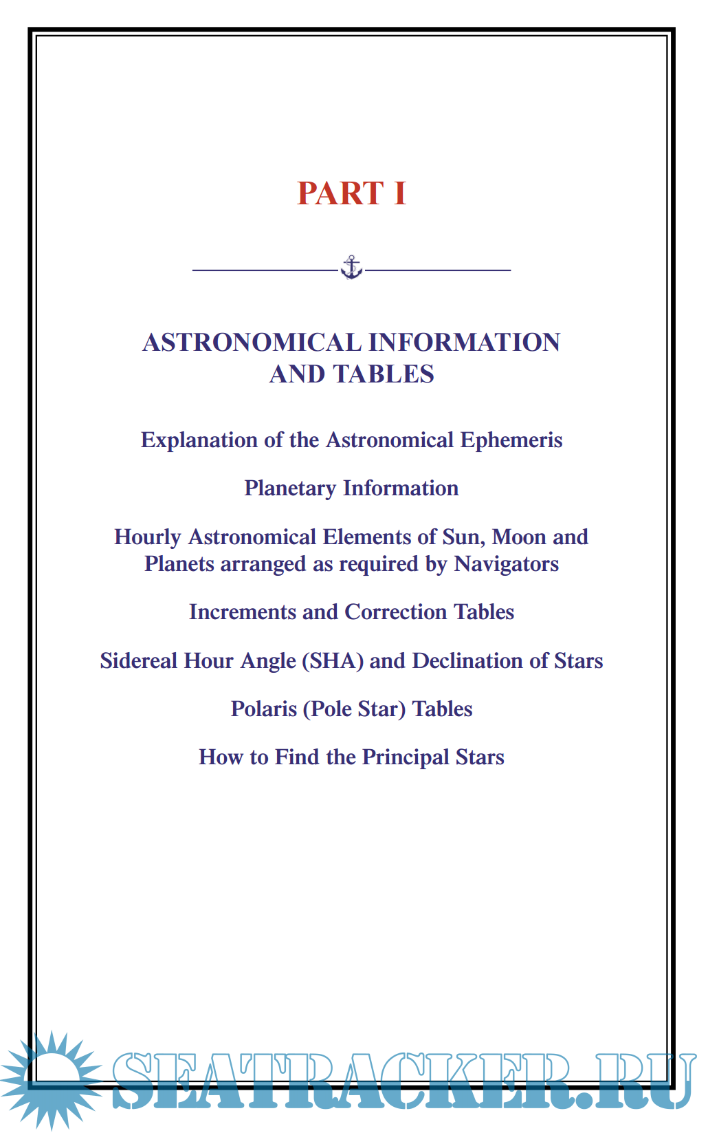 • VII Miscellaneous Information covering Stability, Buoyancy, Celestial, Sailings and Navigation. The Pilotage Information section has been revised to conform with notices issued by Admiralty, Hydrographic Authorities and Port Authorities.