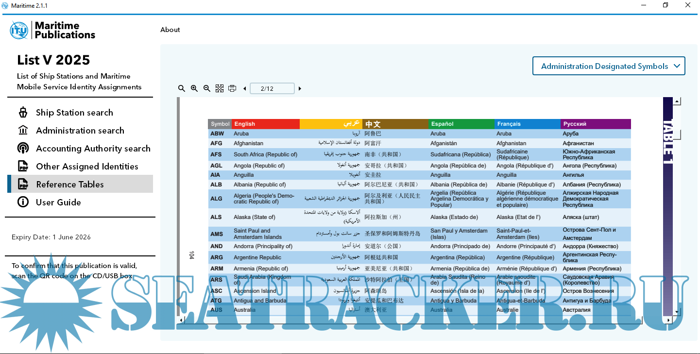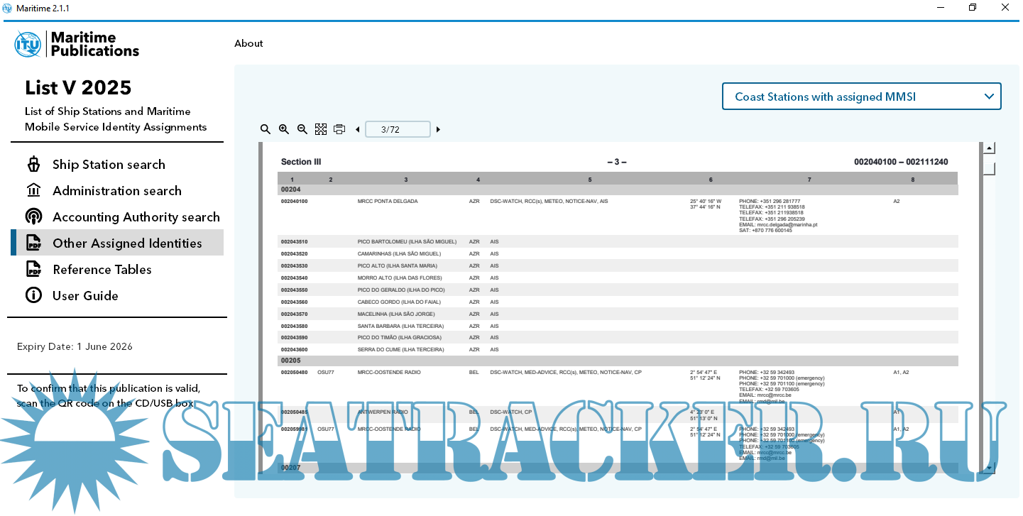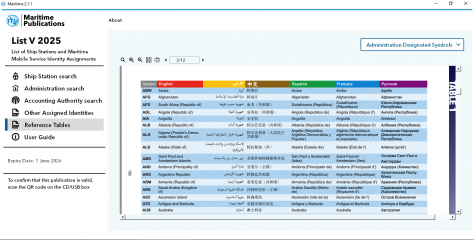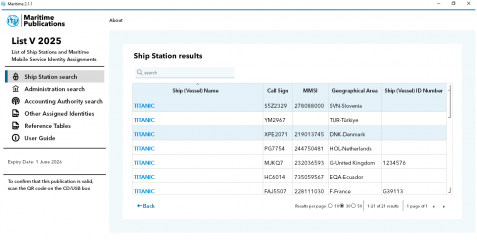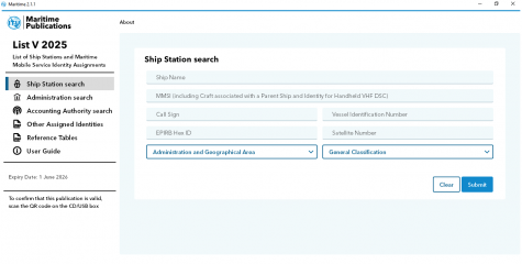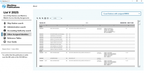 List V is published annually, as per the Radio Regulations this publication shall be provided to all ship stations for which a Global Maritime Distress and Safety System (GMDSS) installation is required by international agreement.