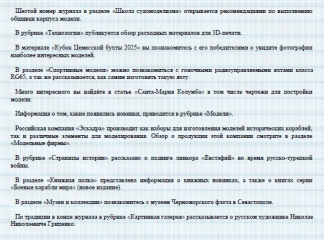 Описание: Журнал «Верфь моделиста» выходит в электронном формате со свободным бесплатным распространением. Журнал ориентирован как на начинающих моделистов, так и на более опытных.