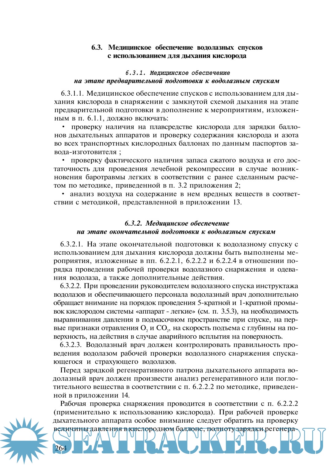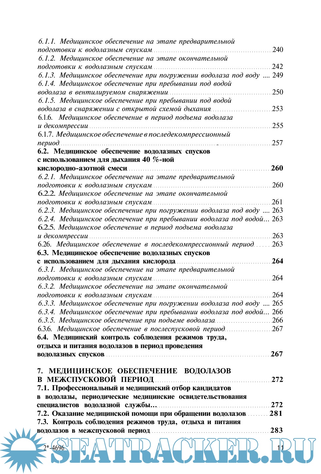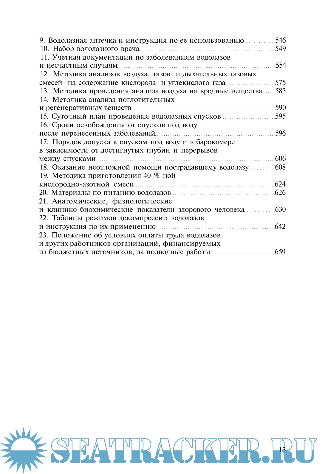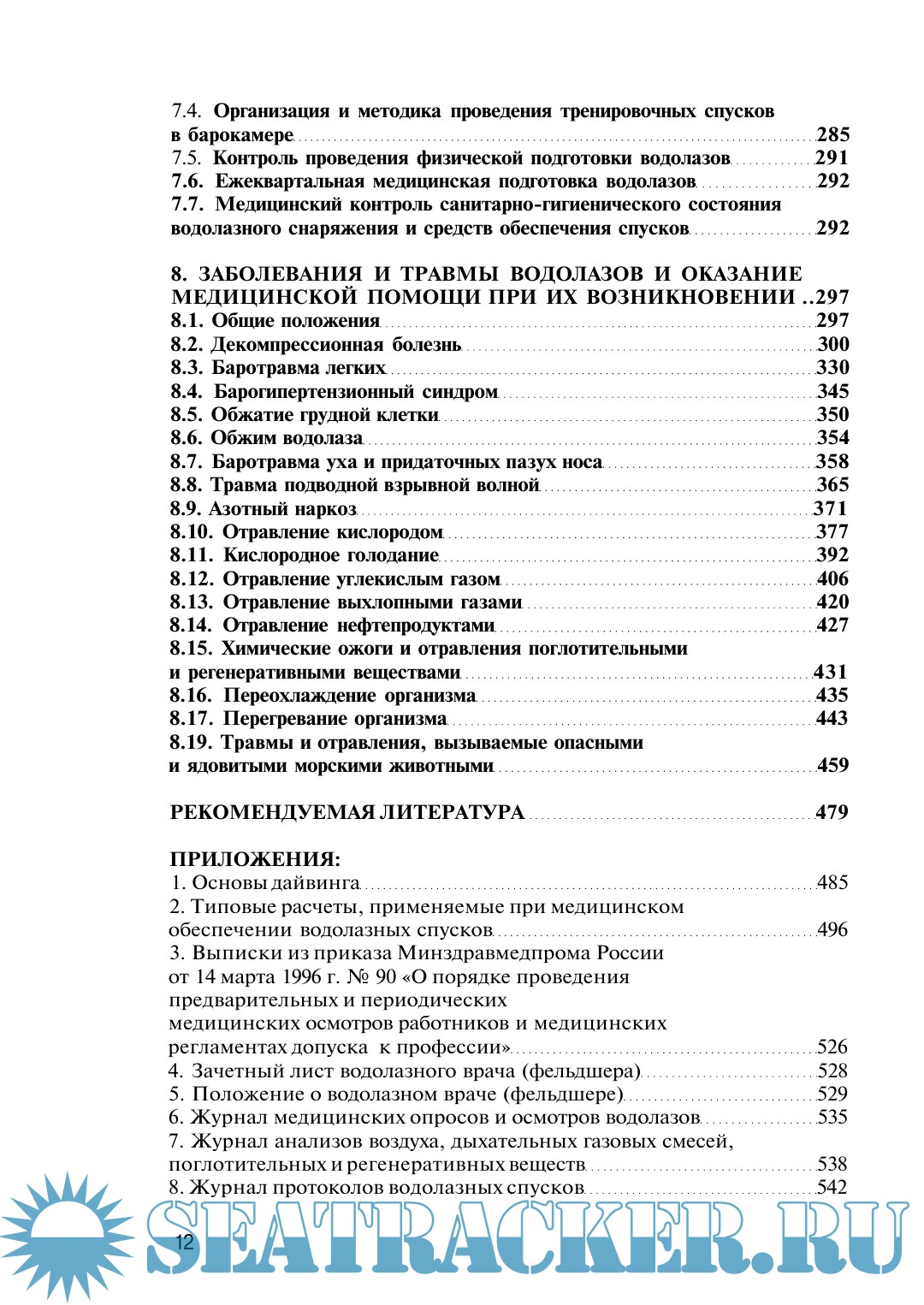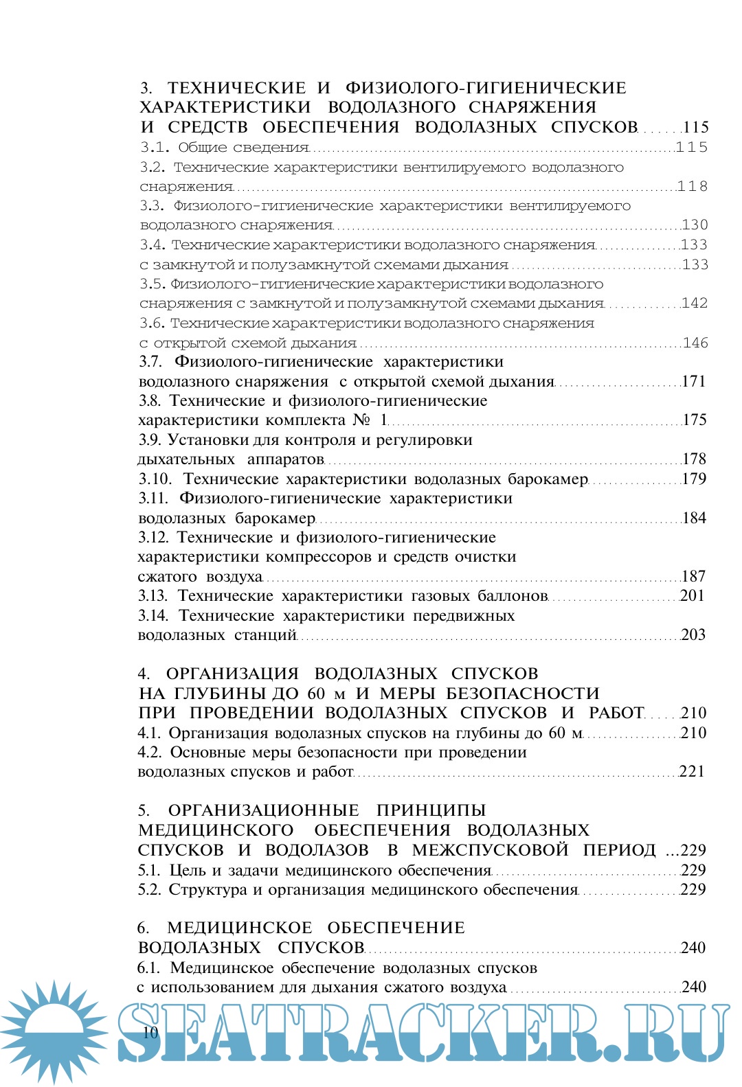 Описание: Книга посвящена спускам под воду на глубины до 60 м и в аварийных ситуациях до 80 м в различных видах водолазного снаряжения с исполь-зованием для дыхания сжатого воздуха, кислорода и 40 %-ной кислородно-азотной смеси, тренировочных спусков в барокамере под давле-нием до 100 м вод.ст., медицинскому обеспечению водолазных спусков и водолазов в межспусковой период. В ней приведены сведения по истории развития водолазного снаряжения и водолазной медицины, технические и физиолого-гигиенические характеристики водолазной техники, опасные и вредные факторы водной и гипербарической воздушной сред, излагаются организация и методика водолазных спусков и их медицинского обеспечения, данные по этиологии, патогенезу, клинике, лечению и профилактике специфических и неспецифических заболеваний водолазов. Представлены основы дайвинга (водолазных спусков по международным правилам), положение об условиях оплаты труда водолазов.