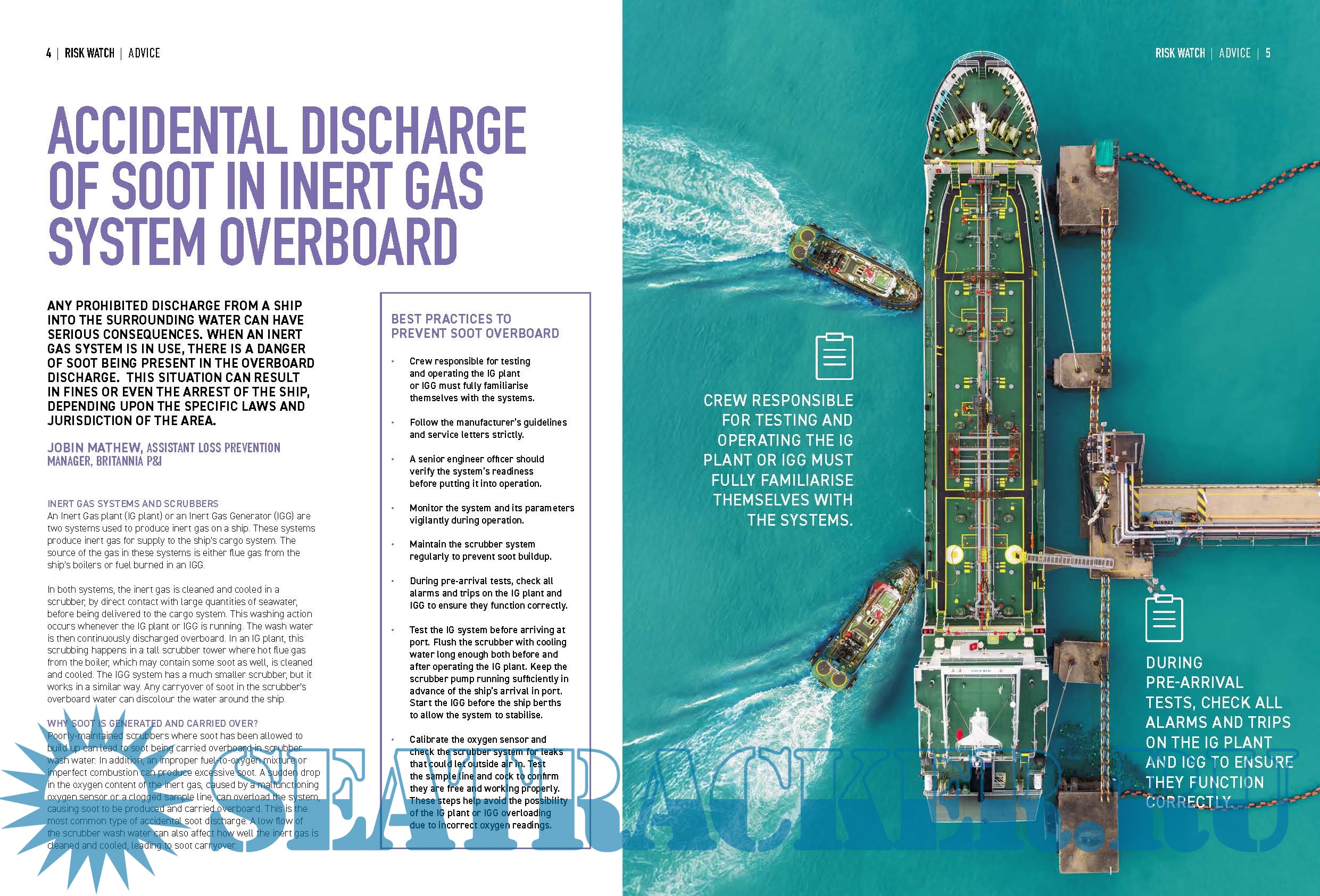 Year: 2025 Language: English Author: Britannia P&I Club Genre: Periodical (journal) Publisher: Britannia P&I Club Edition: December 2025 Format: PDF Quality: eBook Pages count: 20 Description: Welcome to the December edition of Risk Watch in 2025. published by Britannia P&I Club. In this issue of Risk Watch, we explore key topics that strengthen maritime safety and regulatory awareness, including practical guidance on cargo hold ventilation and the prevention of soot discharge in inert gas systems. This edition highlights IMDG Code Amendment 42-24, outlining major updates to the transport of dangerous goods and new provisions for electric vehicles and battery cargoes. We hope you find this issue both informative and engaging, and that it supports your continued commitment to safe and compliant maritime operations.