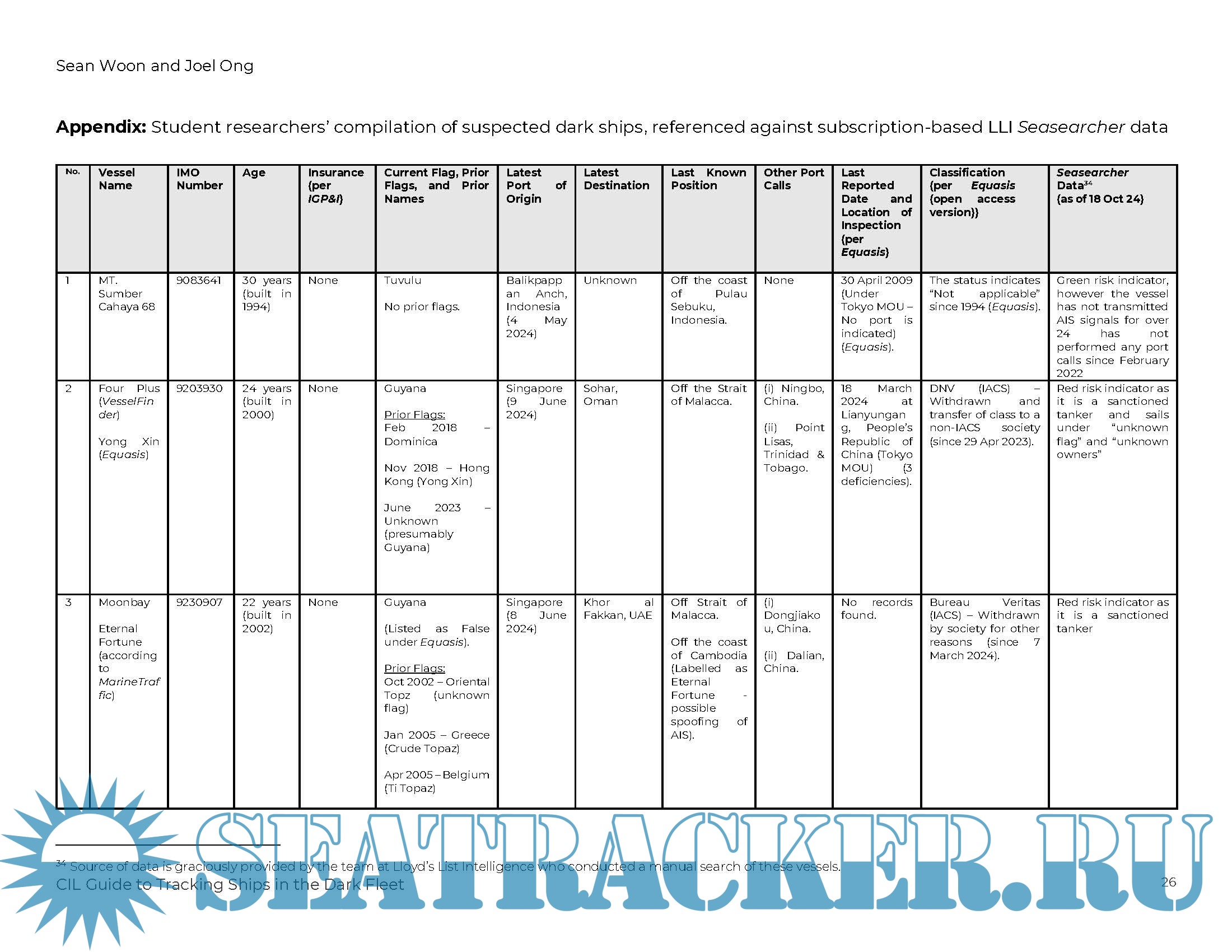 In drafting this Guide, the authors considered various ways in which an administration could collect information on such tankers to boost their maritime domain awareness, including the use of six open access platforms, and one paid subscription-based platform, Seasearcher by Lloyd’s List Intelligence (LLI).