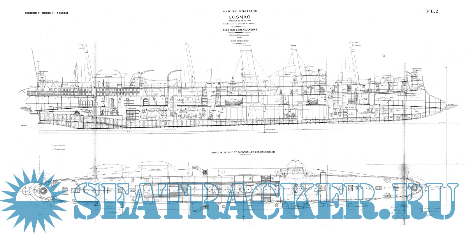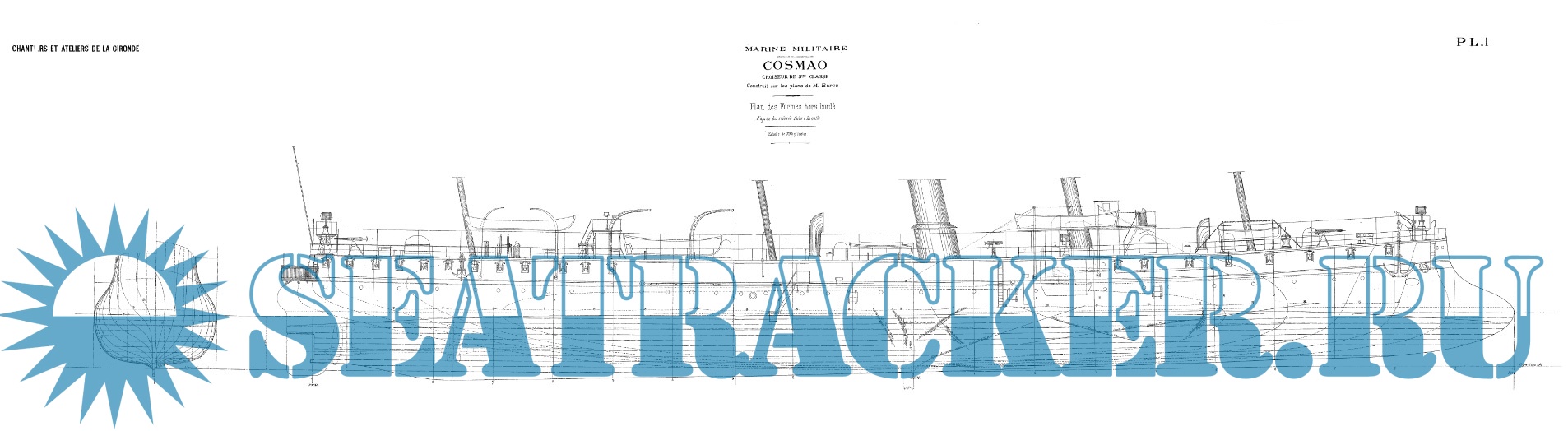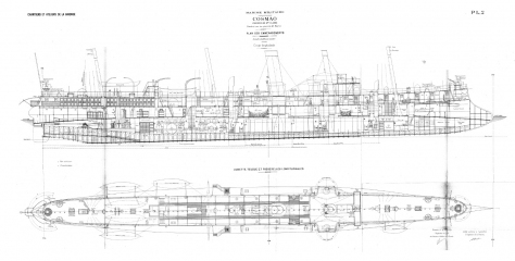 Архивные чертежи французского крейсера 3-го ранга COSMAO 1889 год