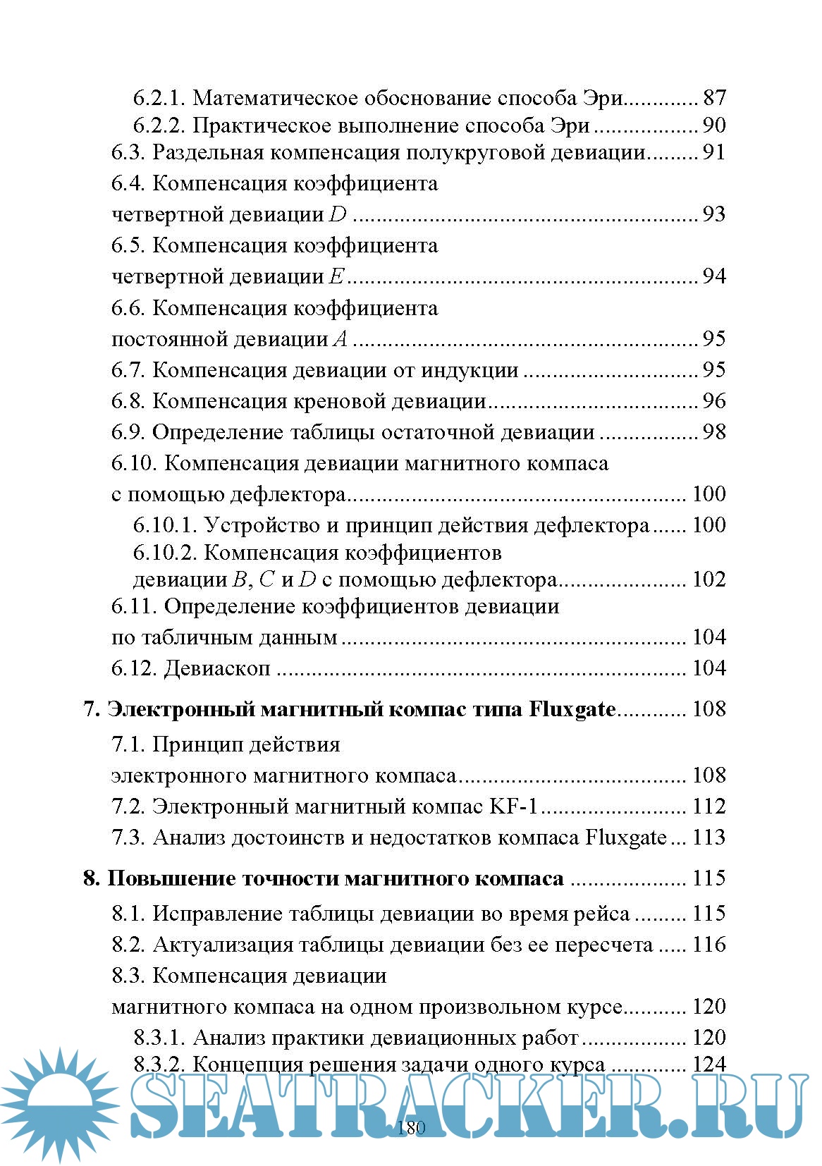 Подробно описан принцип действия магнитного электронного компаса типа Fluxgate. Рассмотрены вопросы повышения точности магнитных компасов, перспективные методы уничтожения девиации и полной автоматизации девиационных работ. Рассмотрены вопросы взаимного контроля гирокомпасов и магнитных компасов, состояние дел в этом вопросе на современном мировом торговом флоте.