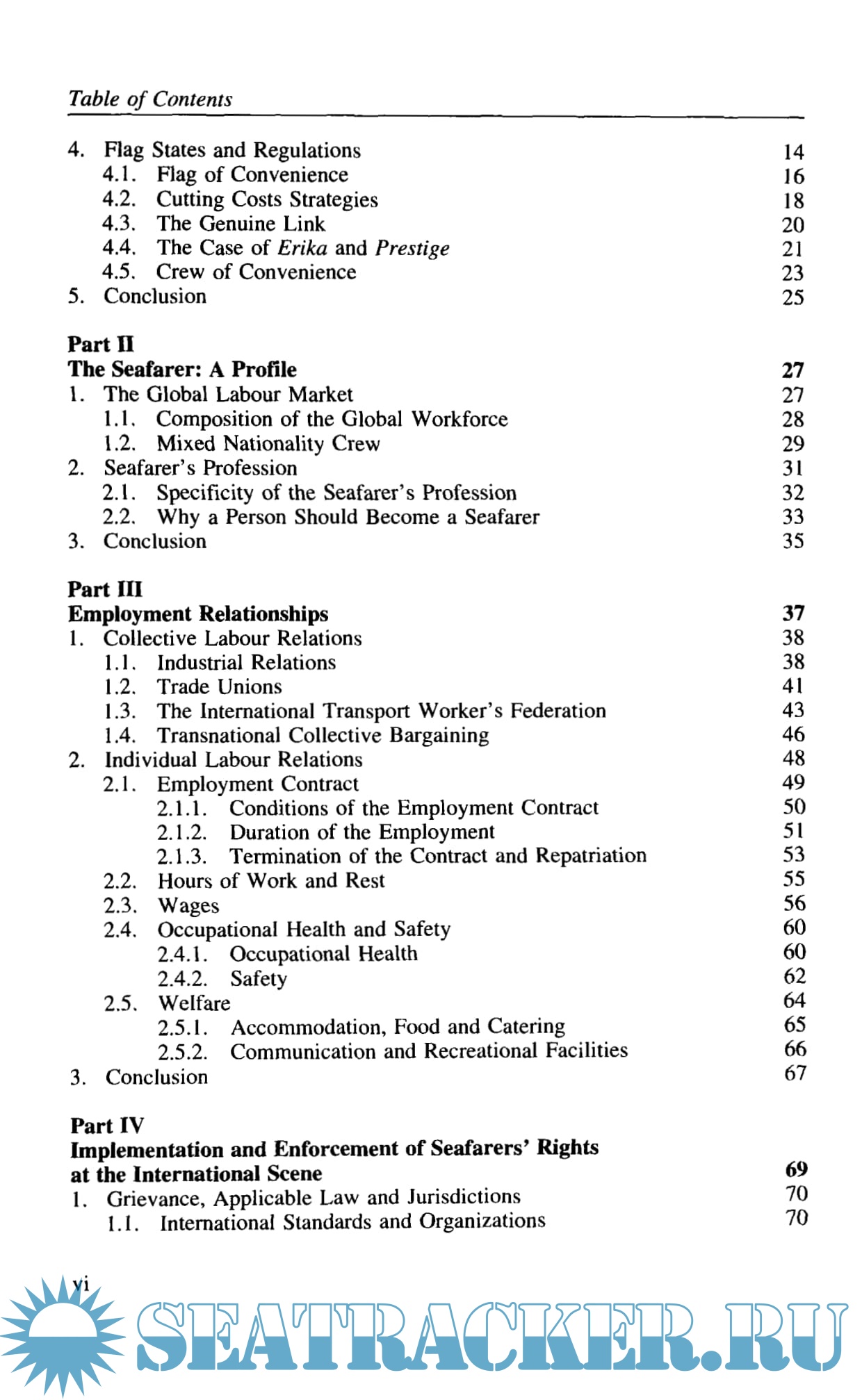 Year: 2010 Language: English Author: Desislava Nikolaeva Dimitrova Genre: Maritime Law Publisher: Kluwer Law International Edition: 1st ISBN: 978-90-411-3349-6 Format: PDF Quality: Scanned pages + text layer Pages count: 184 Description: The enormous technological, financial, and structural changes of recent decades have revolutionized the international shipping industry, bringing about lower freight rates, shorter time in port and fast turnarounds, reduction in crew size, employment of cheap labour from developing countries, avoidance of national regulations and taxes, and diminished living and working standards on board. Exploitation of seafarers has always existed, but now it has become more common and frequent. Shipowners can cut costs in various ways, but the most profitable and easiest to achieve are those at the expense of labour costs, in particular costs for maintaining proper living conditions on board the ship. This bulletin examines in detail the structure of the shipping industry, focusing on problems concerning the working and living conditions of seafarers on board merchant ships serving the global sea transport system. Exploring all levels of maritime policymaking on a global and European level, the author analyses seafarers’ rights in the light of international enforcement mechanisms and particularly in the light of the recent ILO Maritime Labour Convention. He also considers relevant case law, as well as advisory opinions and policy statements from various pertinent agencies, especially in the EU context.. Among the issues raised and discussed in depth in relation to their effect on seafarers’ labour standards are the following: • ship manning companies; • illicit crewing agencies; • flags of convenience; • hours of work and rest; • wages; • occupational health and safety; • accommodation, food, water, and catering; • recreational facilities; • filing of grievance; and • port controls. The author shows that, expansion and progress of the maritime industry notwithstanding, there is a great need for effective enforcement mechanisms in this area. This is the first detailed analysis to connect the working and living conditions of seafarers with international, supranational, and national maritime legislation. A giant step towards establishing a global monitoring system to enforce international maritime conventions regarding seafarers’ labour standards, it is sure to make an important contribution to both international labour and employment law and the law of the sea.