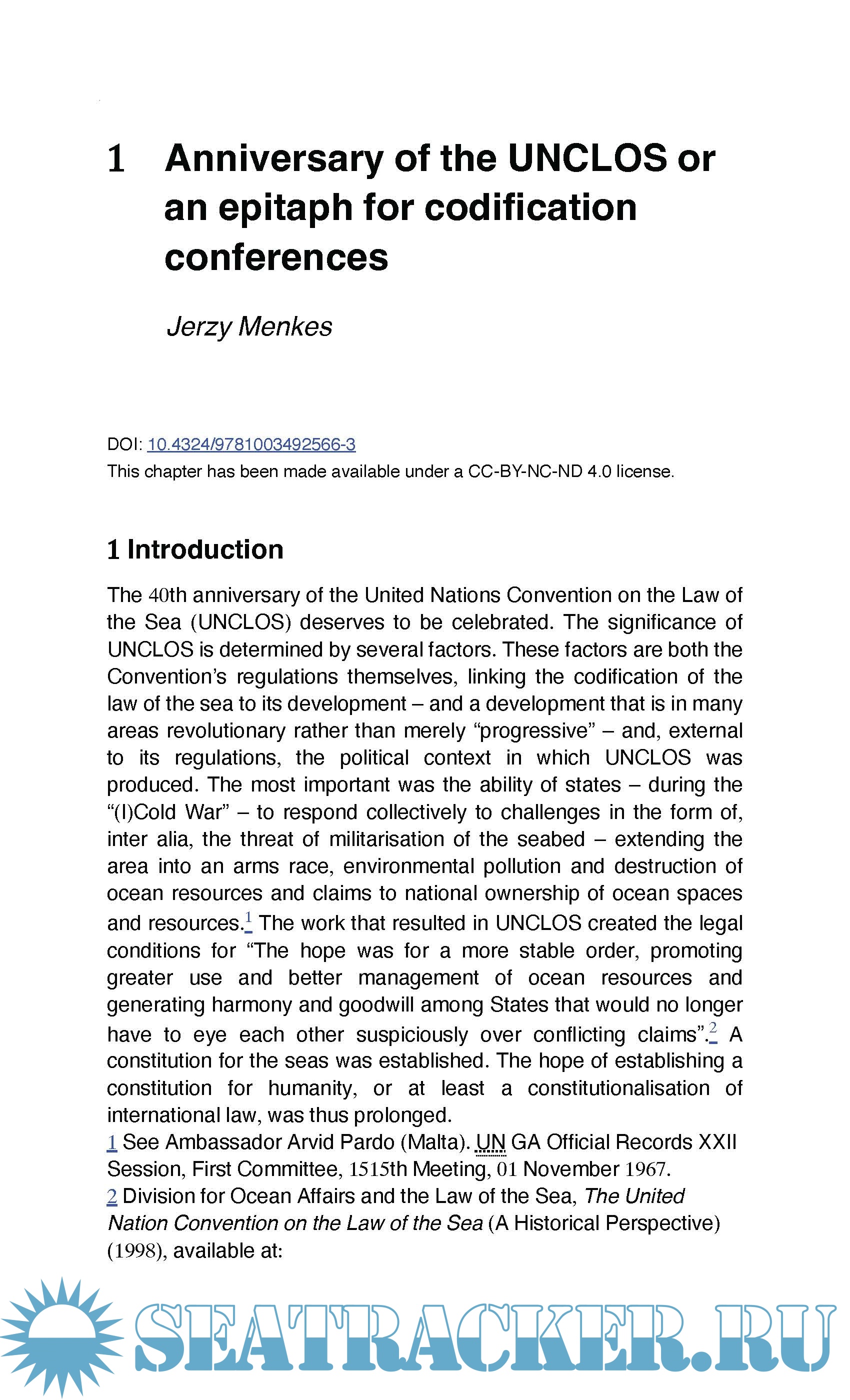 40 Years of the United Nations Convention on the Law of the Sea: Assessment and Prospects