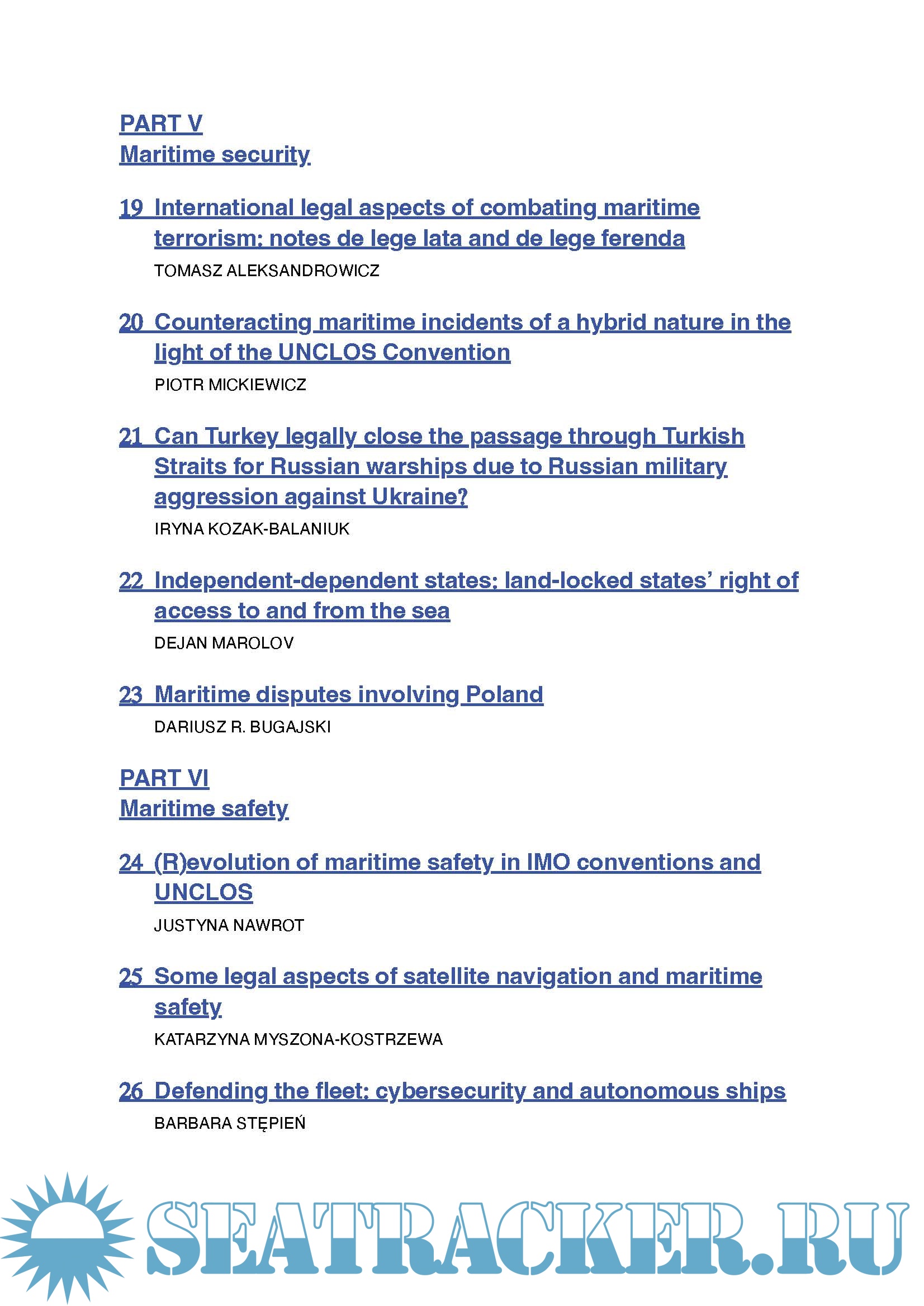 Given the considerable time elapsed since the convention’s adoption and nearly three decades of its implementation, the book analyses the interplay and influence of its provisions on international customary law, as well as to identify issues arising from its application. The book explores and discusses crucial aspects of the law of the sea, addressing challenges and future perspectives related to UNCLOS provisions, such as the delimitation of maritime areas, maritime security, safety, environmental protection, and the implications of advancing technologies, particularly in the realm of unmanned vessels. Additionally, the book delves into recent maritime legal challenges arising from the conflict in Ukraine and the global impact of the COVID-19 pandemic.