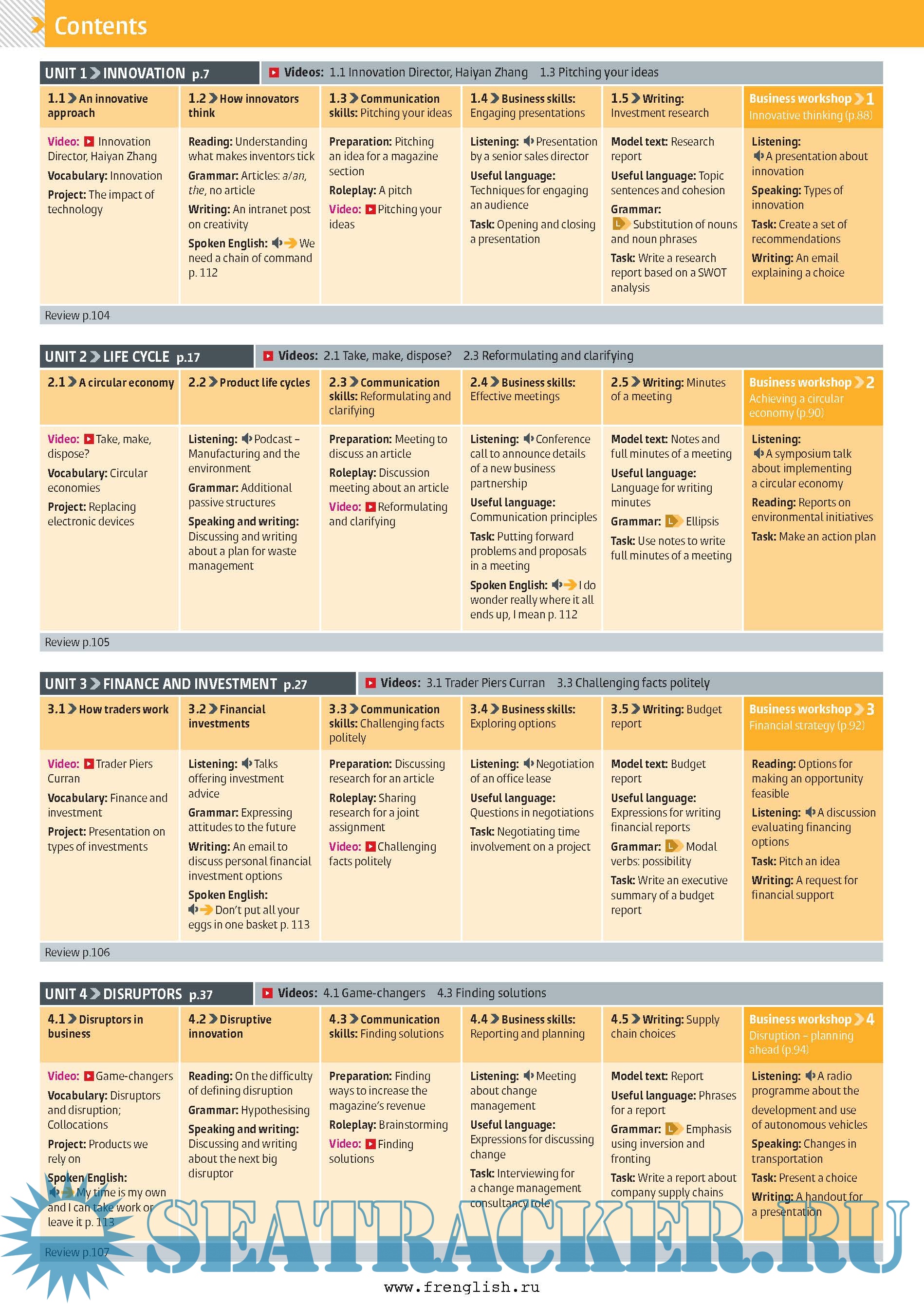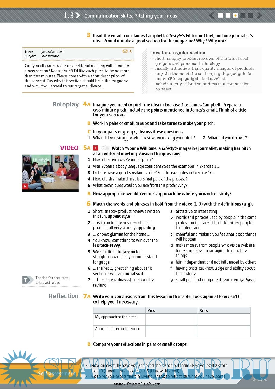 Authentic video content introduces unit topics, exposing students to real English and the sorts of issues they may encounter in their careers. Financial Times articles provide reading practice to build on the topics discussed in the videos, further exposing students to authentic English. Students work on case studies that allow them to practice their business and communication skills in realistic professional contexts.