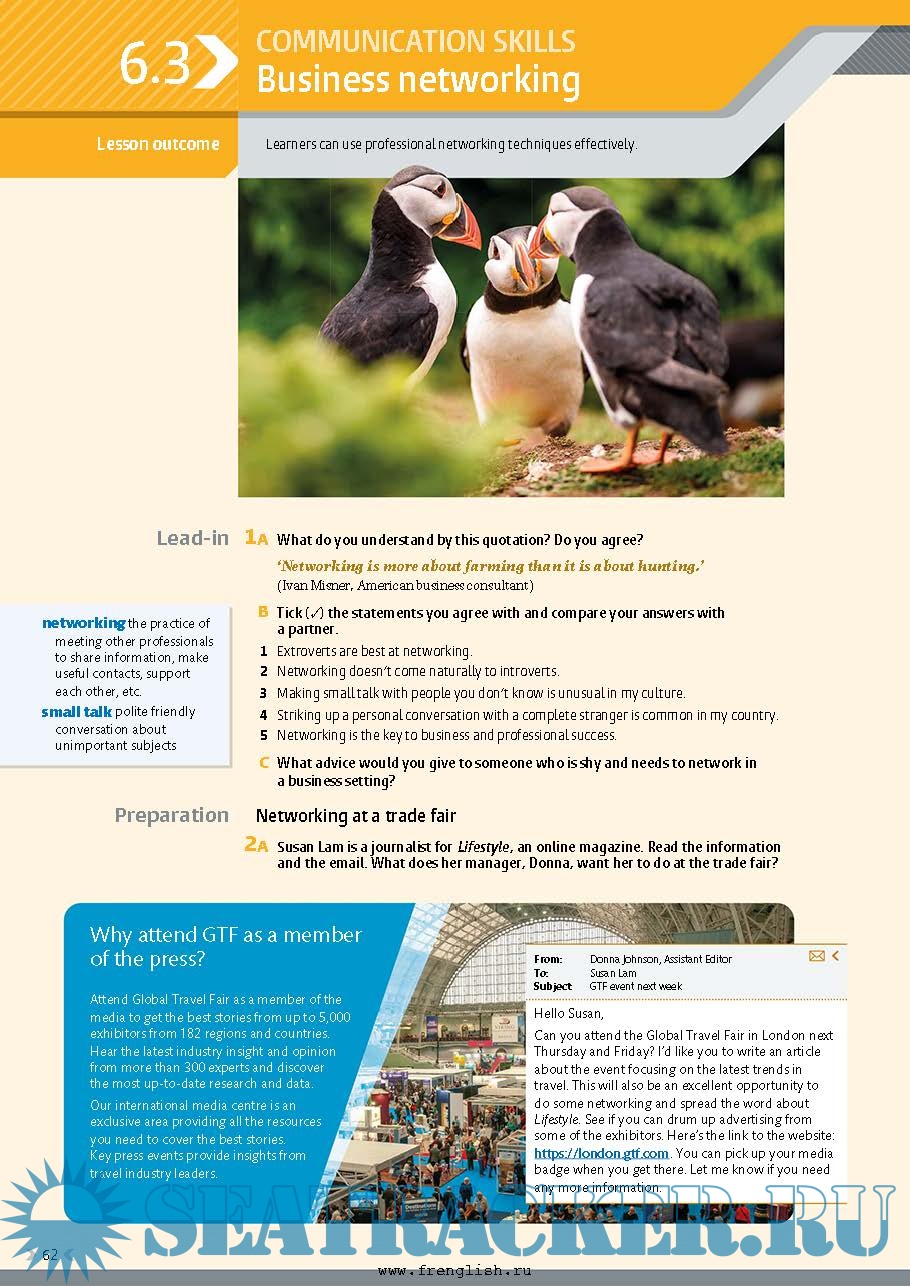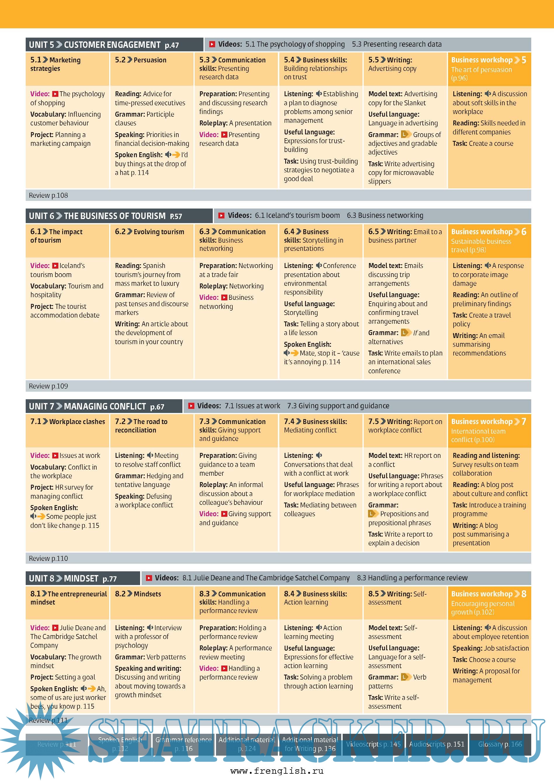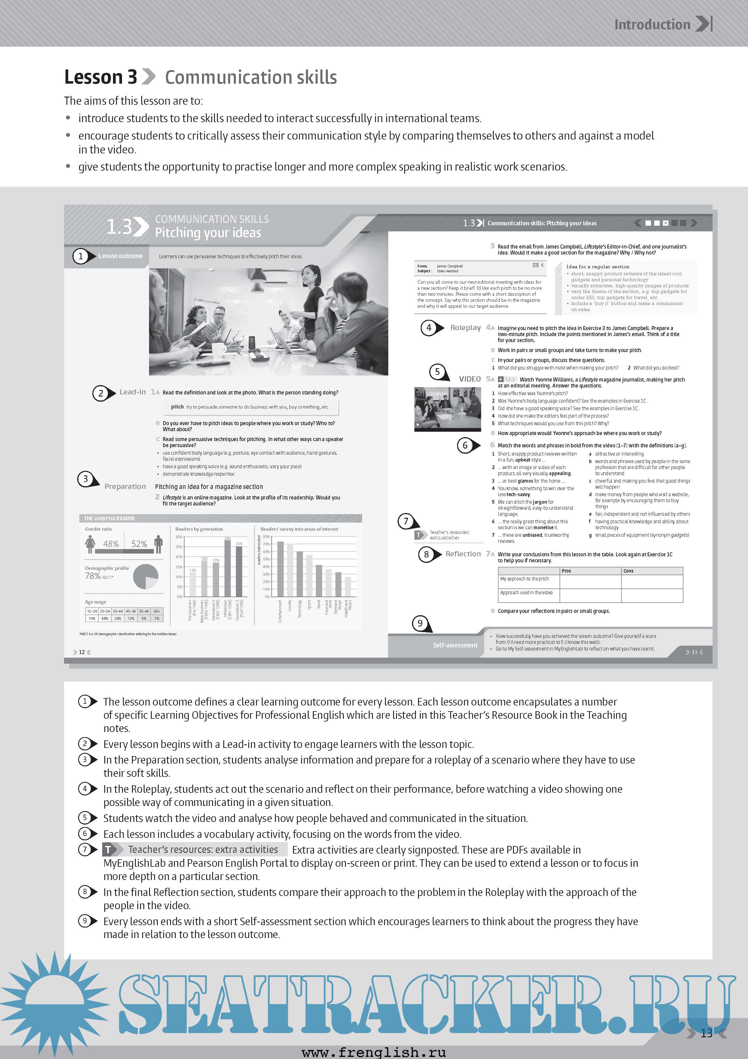 The authentic video content features real-life business stories, providing information and key language relating to business topics. The dramatized videos of real work situations feature a range of accents and demonstrate dealing with professional challenges to help students develop communication skills, such as influencing and listening actively.