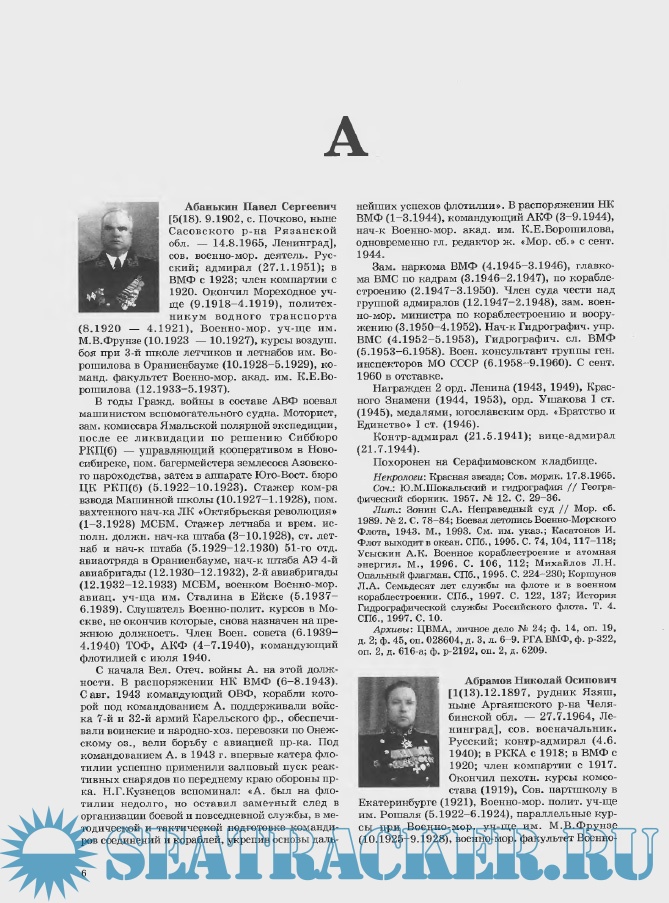 Год выпуска: 2001 Язык: Русский Автор: Лурье В.М. Жанр: История ВМФ Издательство: <kbw Формат: PDF Качество: Изначально компьютерное (eBook) Количество страниц: 279 Описание: Автор не дает собственных оценок, их в какой-то степени заменяют выдержки из подлинных документов — боевых характеристик, аттестаций, наградных листов. Тем не менее в биографиях подробно, с документальной точностью, просматривается судьба каждого из адмиралов и генералов, о многих из которых раньше мы мало что знали. К сожалению, книга выходит в свет, когда все ее герои ушли из жизни. Сознавая свою ответственность перед их потомками, автор документально показывает, каким нередко нелегким и тернистым был путь их отцов и дедов. В судьбе практически каждого были взлеты и падения, в том числе и по причинам, от них не зависящим. Однако в абсолютном большинстве случаев, даже в самых тяжелых ситуациях, вели они себя достойно и мужественно. Автор справочника — научный сотрудник Центрального военно-морского архива В.М. Лурье — много лет работает над сбором материалов о биографиях советских адмиралов и генералов. Им написан ряд биографических статей, опубликованных в Военной и др. энциклопедиях и изданиях. Он является соавтором книги «Командный состав армии и флота в период Великой Отечественной и советско-японской войн 1941-1945 гг.», в течение нескольких лет публикует биографии адмиралов в историческом журнале С.-Петербургского государственного университета «Новый часовой».