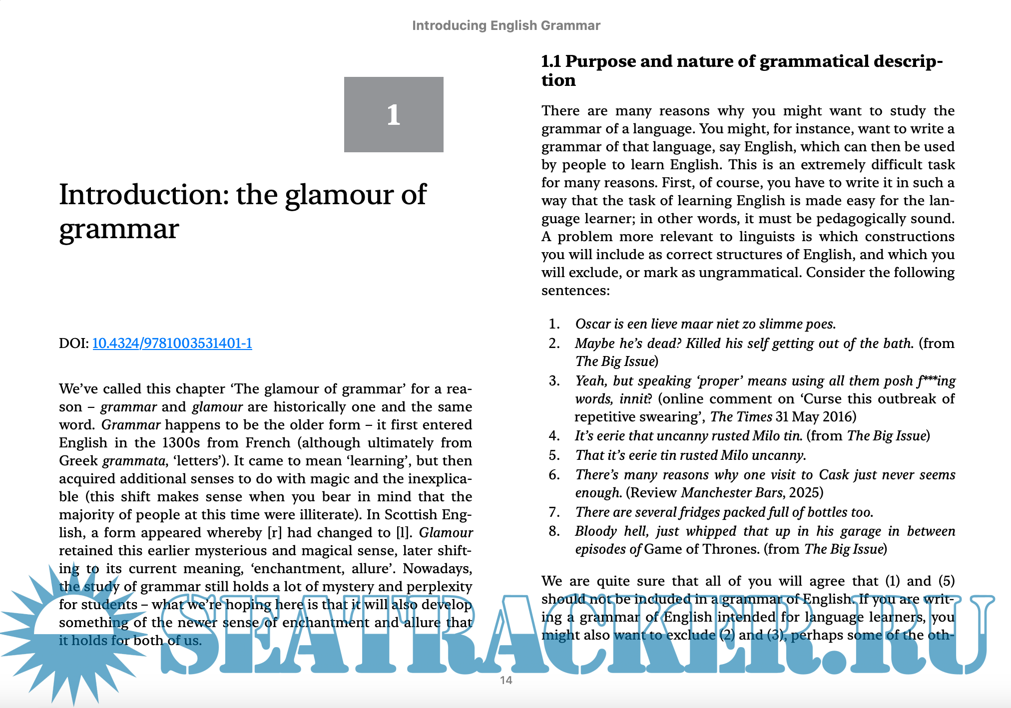 Description: Introducing English Grammar introduces readers to the methodology and terminology needed to analyse English sentences. The approach taken is in line with current research in grammar, a particular advantage for students who may go on to study syntax in more depth. All the examples and exercises use real language taken from both standard and non-standard varieties, geographical areas and dialects, and include excerpts from Australian and British newspaper articles. Students are encouraged to think about the terminology as a tool kit for studying language and to test what can and cannot be described using these tools.