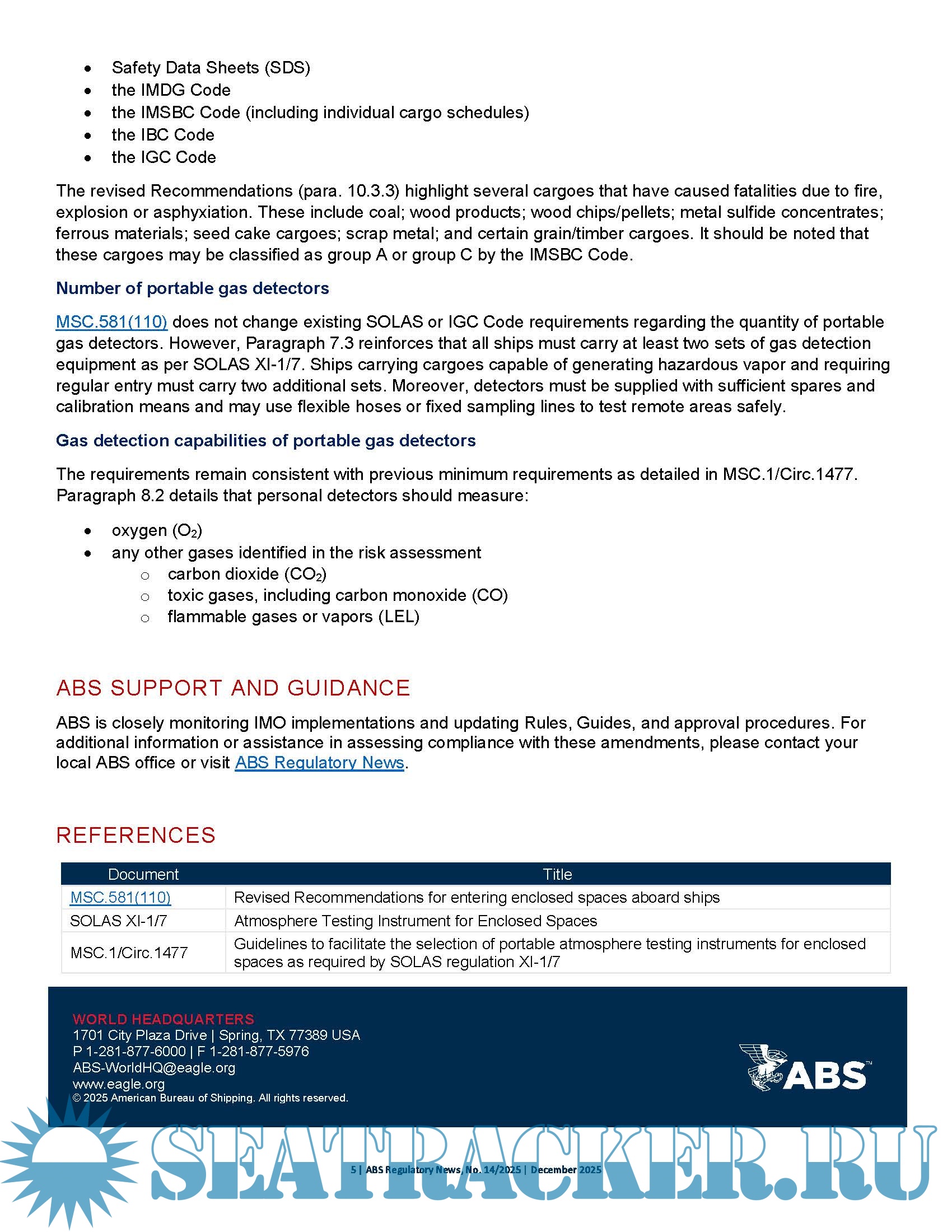 This Regulatory News provides an overview of IMO Resolution MSC.581(110), which introduces the Revised Recommendations for Entering Enclosed Spaces Aboard Ships. These new Recommendations supersede and revoke Resolution A.1050(27), replacing them with updated safety measures, definitions, and procedural requirements aimed at reducing fatalities during enclosed space entry.