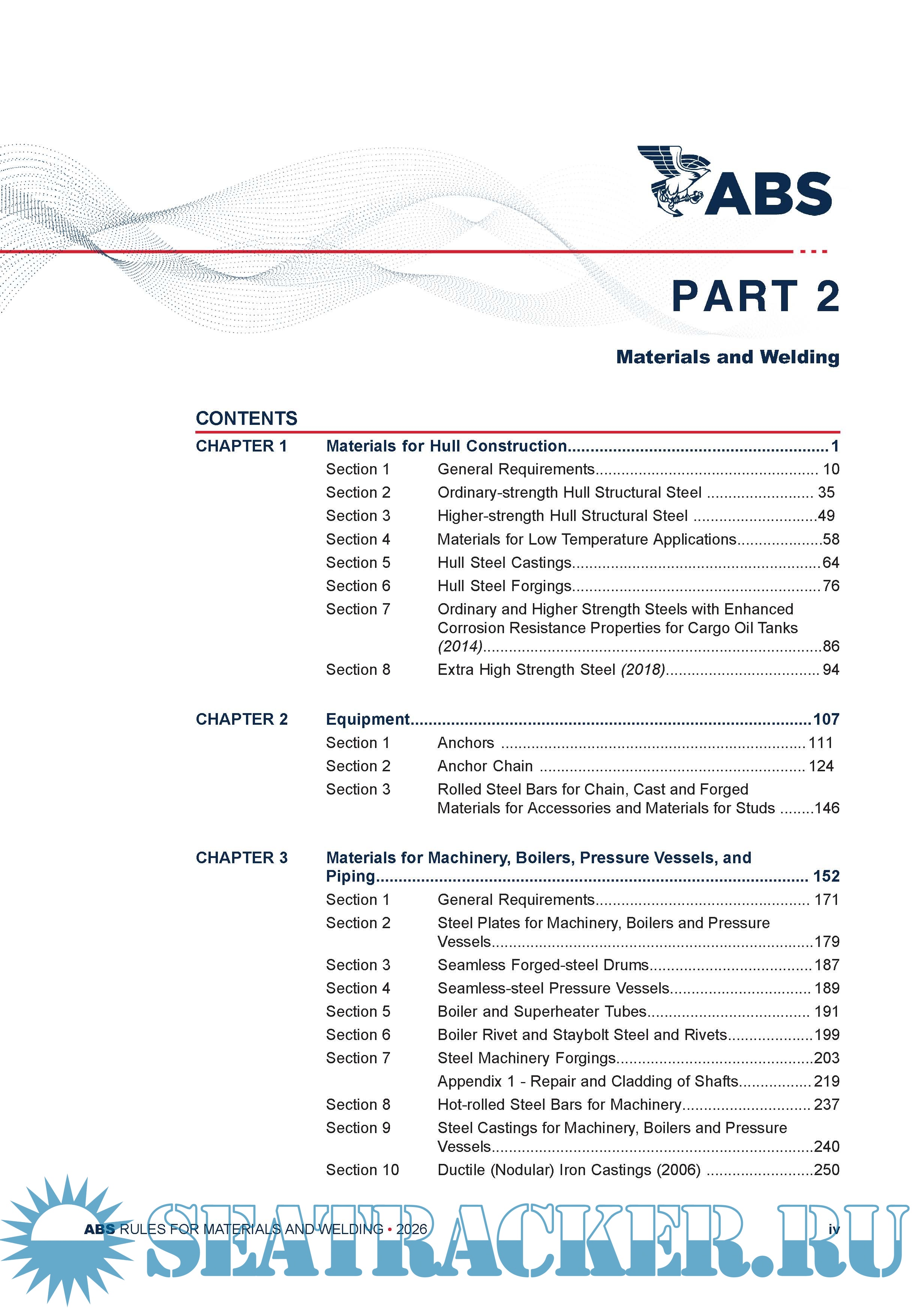 The title “Rule Requirements for Materials and Welding (Part 2)” is intended to emphasize the common applicability of the material and welding requirements in “Part 2” to ABS classed vessels, other marine structures and their associated machinery, and thereby make “Part 2” more readily a common “Part” of the various ABS Rules and Guides, as appropriate.