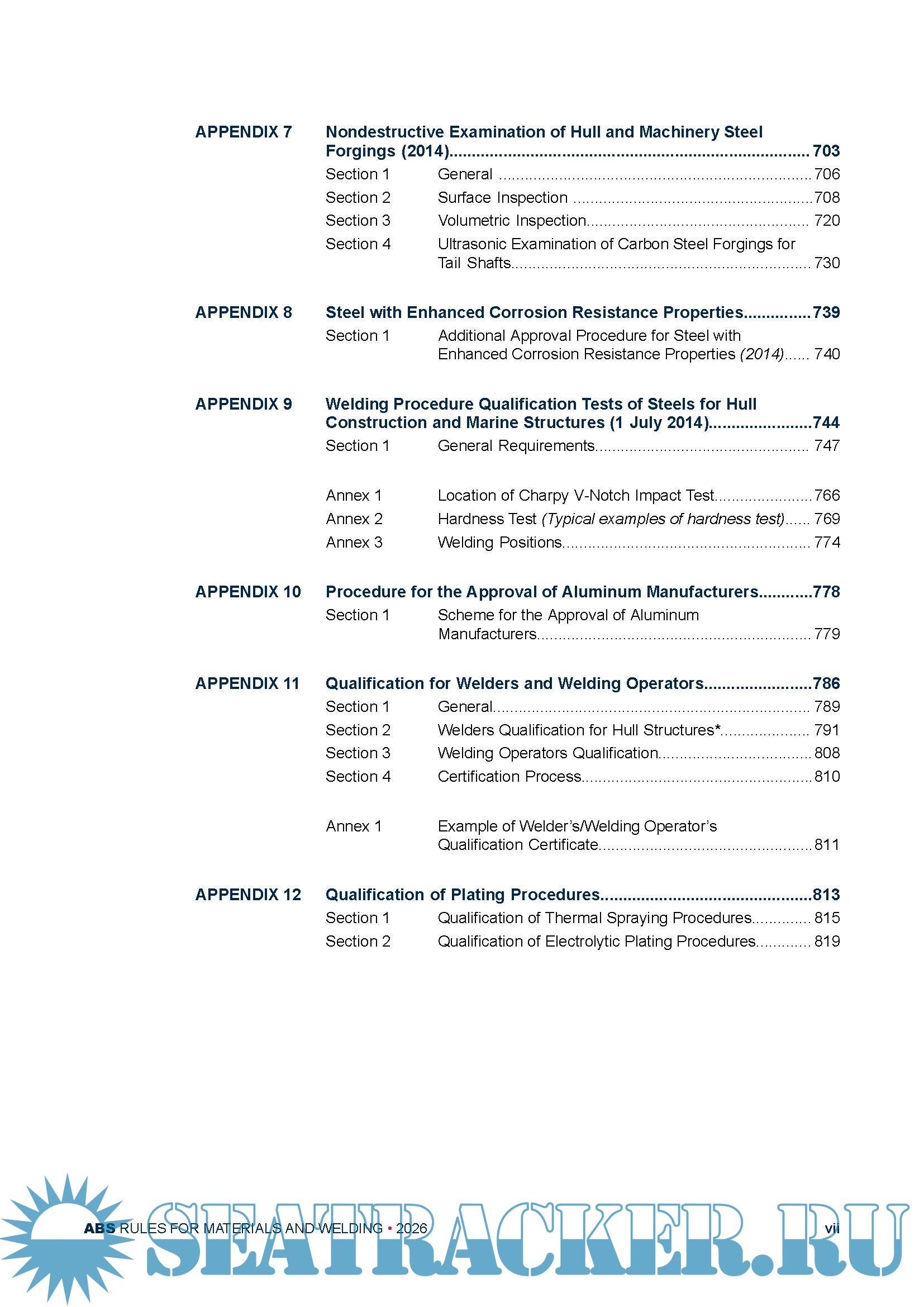 Description: These Rules specify the ABS requirements for materials and welding for steel, aluminum and fiber reinforced plastics applicable to ABS classed vessels, other marine and offshore structures and their associated machinery.