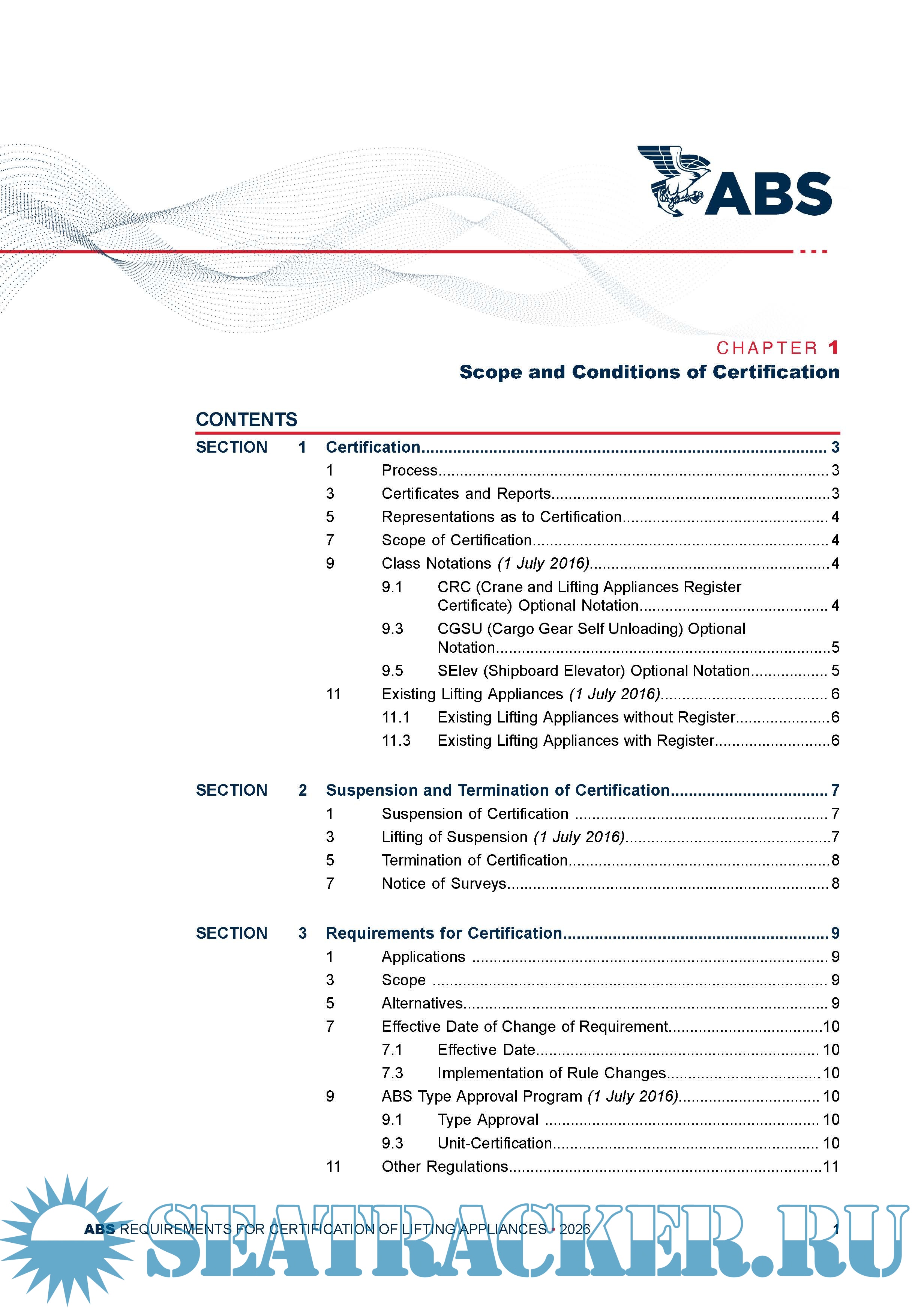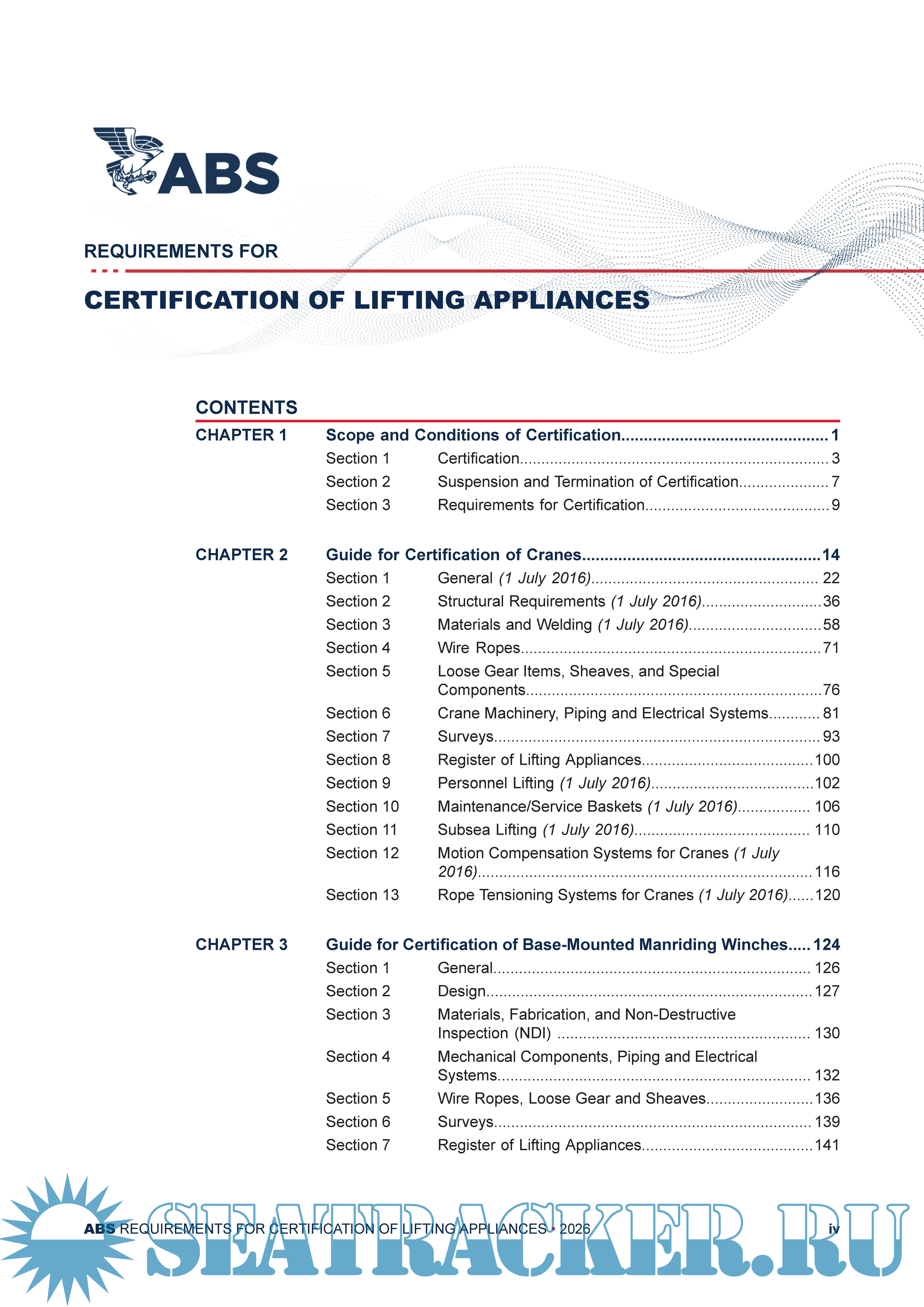 Guide for Certification of Lifting Appliances - American Bureau of Shipping (ABS) [2025, PDF]