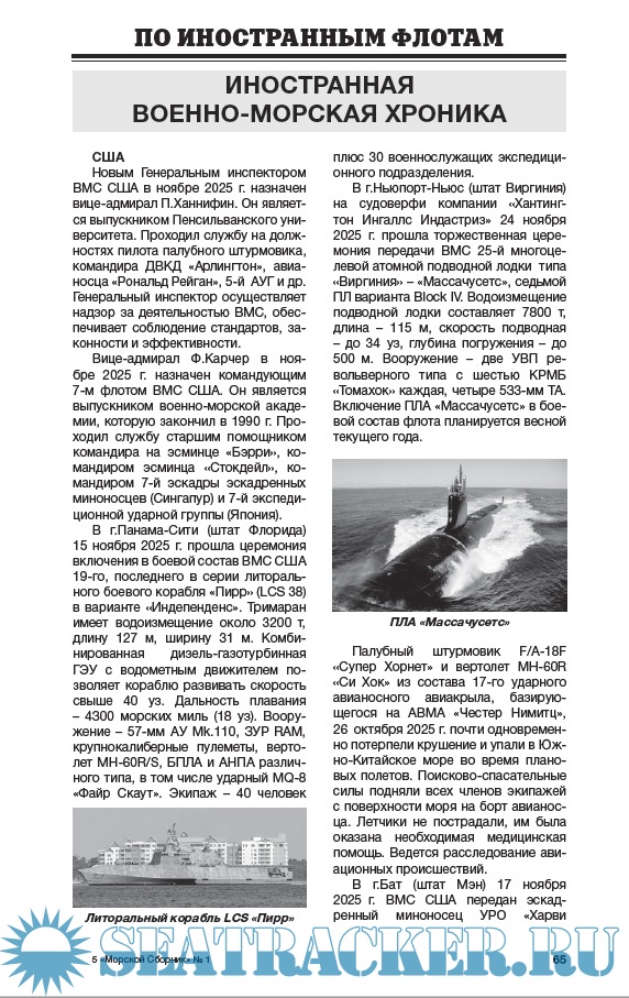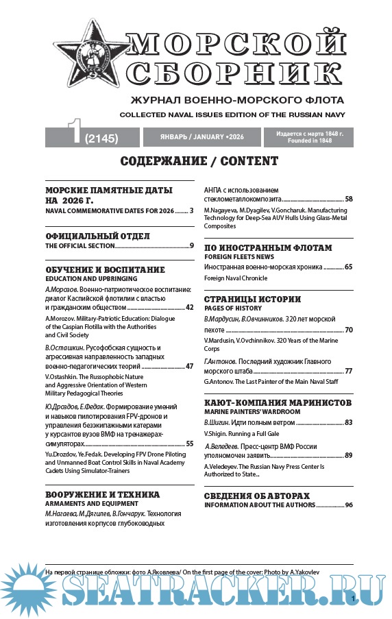 Год выпуска: 2026 Язык: Русский Автор: группа авторов Жанр: Периодическое издание (журнал) Издание: 2026-01 Формат: PDF Качество: Изначально компьютерное (eBook) Количество страниц: 108 Описание: «Морской сборник» – официальный ежемесячный журнал Военно-Морского Флота России. Он выходит в свет уже более 160 лет без перерыва на войны или революции. Российские моряки с гордостью говорят, что сегодня у флота России есть две настоящие реликвии – это крейсер «Аврора» и легендарный журнал «Морской сборник».