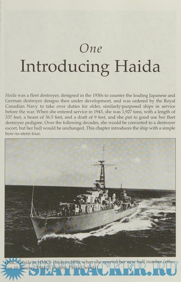 Dr. Barry Gough, the historian of the HMCS Haida and a well-known author on naval topics, shows through the use of pictures and short captions what this historical and unique ship is all about. Close up pictures of her interior, armaments and life during her active time bring to life this wonderful ship.