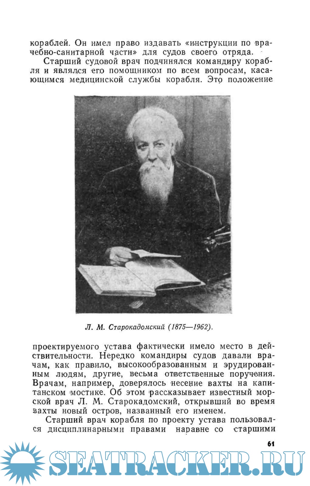 Описание: Книга содержит основные сведения по разработке и освоению тактики боя новых типов кораблей русского военно-морского флота. В связи с быстрым техническим прогрессом изменились условия службы на флоте, потребовавшем разрешения новых проблем военно-морской гигиены. Из нее выделились — корабельная санитарная техника и физиология. Получила дальнейшее развитие и совершенствование тактика медицинской службы флота, военно-морская хирургия, военно-морская терапия, военно-морская эпидемиология и др. Об этом рассказывается в указанной книге. Она поможет широкому кругу советских медицинских работников, студентам медицинских институтов и училищ ознакомиться с историей отечественной военно-морской медицины второй половины XIX и начала XX века. Богатое наследие, оставленное морскими врачами этого периода представляет особенно большую ценность для советских морских врачей. Собранные в книге материалы окажут им практическую помощь в разрешении многих вопросов медицинского обеспечения современного военного и гражданского флота. В трудах Д.В. Мерцалова, К.С. Моркотуна, Н.И. Августовского, Я.И. Кефели, Л.А. Орбели, В.А. Андреева, Л.М. Старокадомского и других морских врачей, неоднократно упоминаемых в книге, содержится много актуальных идей и практических сведений, знание которых необходимо сегодня каждому морскому врачу.