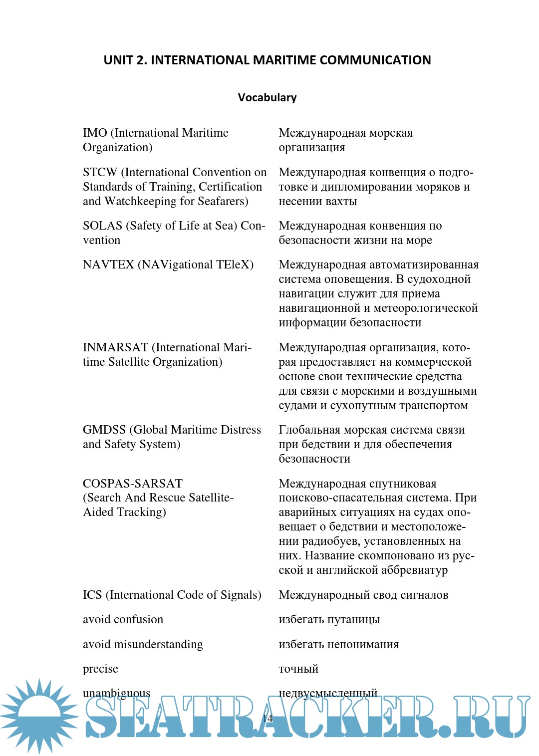 Описание: Учебное пособие составлено по материалам международных морских конвенций и содержит профессиональную лексику, задания коммуникативной направленности, глоссарий для судоводителя и соответствующие изучаемым темам стандартные фразы ИМО для общения на море. Подготовлено в соответствии с требованиями Федерального государственного образовательного стандарта высшего образования. Учебное пособие предназначено для студентов, обучающихся по укрупненной группе специальностей и направлений подготовки высшего образования «Техника и технологии кораблестроения и водного транспорта», изучающих дисциплину «Иностранный язык (английский)».