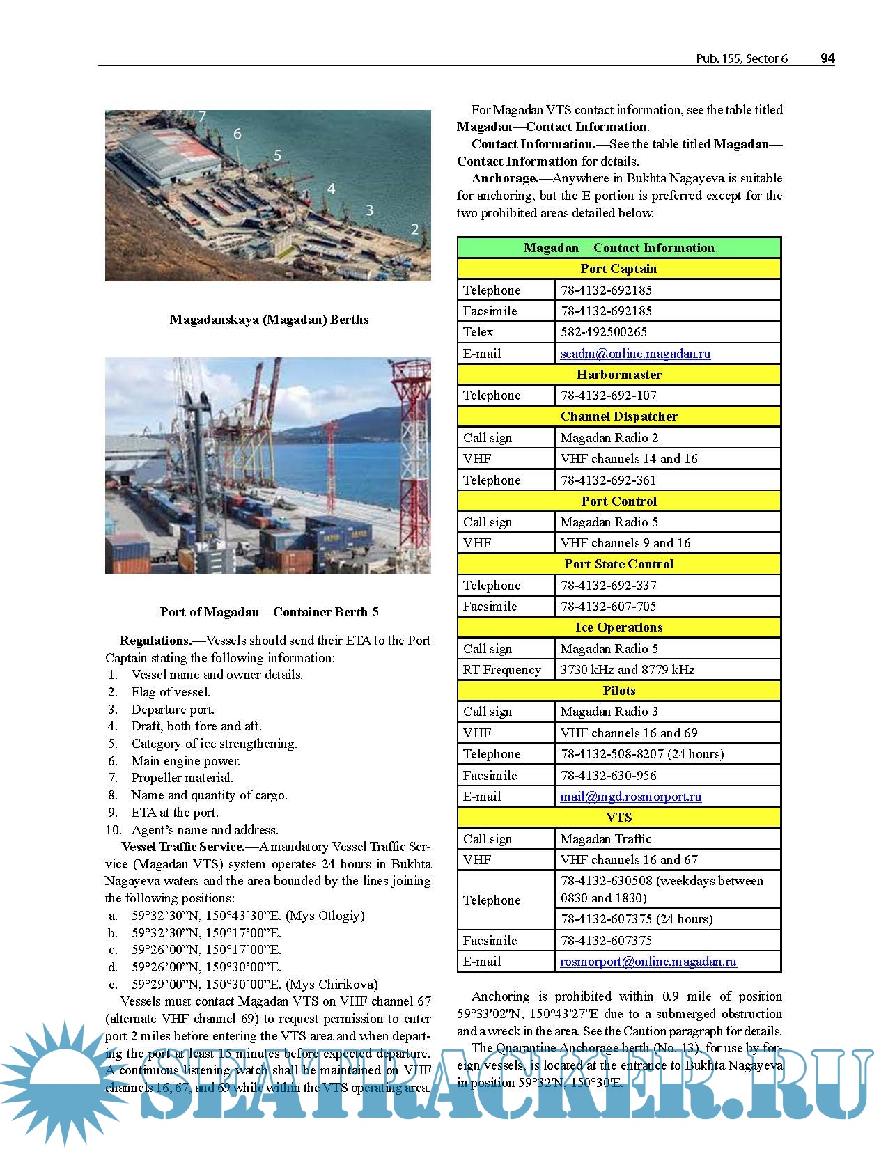 Description: Pub. 155, Sailing Directions (Enroute) East Coast of Russia, Sixteenth Edition, 2026 is issued for use in conjunction with Pub. 120, Sailing Directions (Planning Guide) Pacific Ocean and Southeast Asia. The companion volumes are Pubs. 153, 154, 157, 158, and 159.