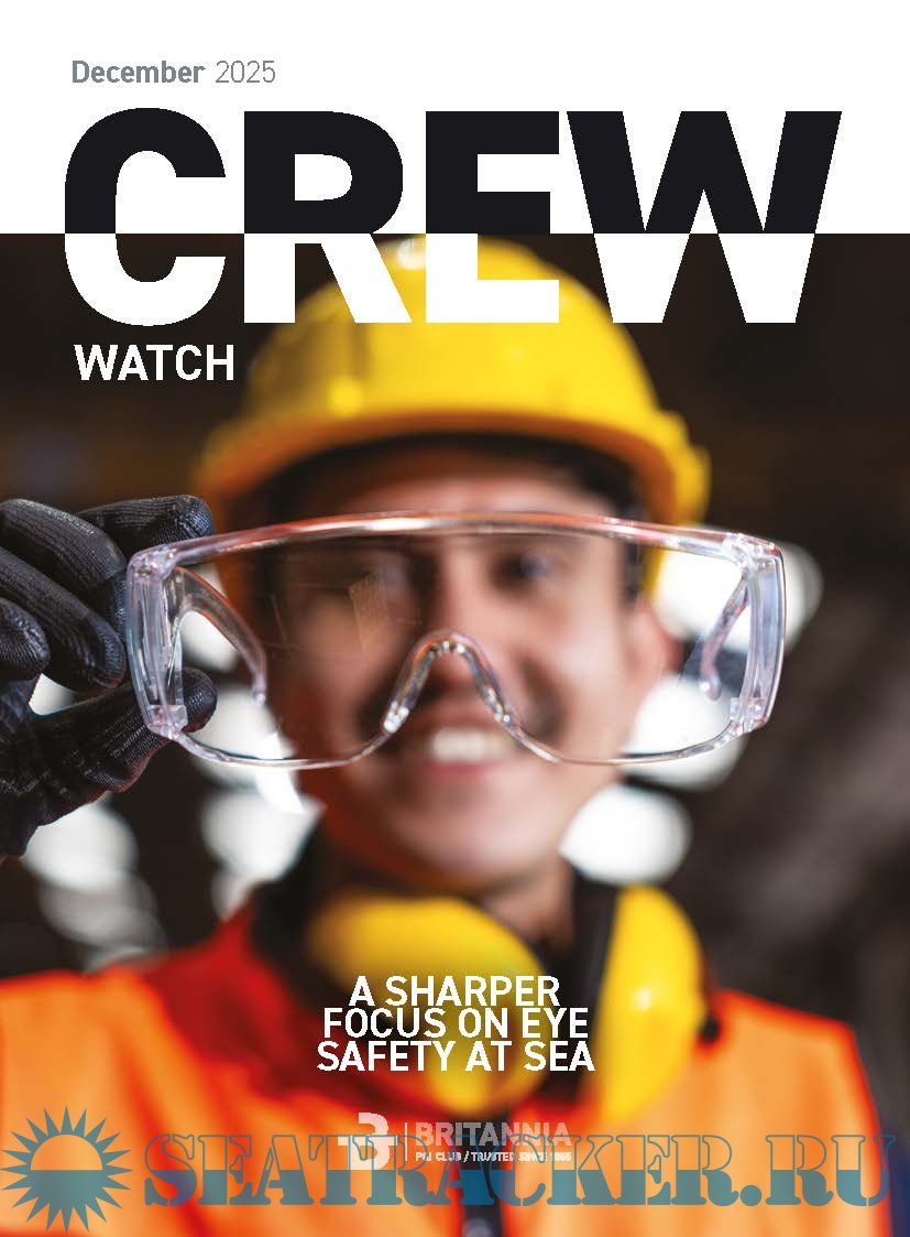 Year: 2025 Language: English Author: Britannia P&I Club Genre: Magazine Publisher: Britannia P&I Club Edition: December 2025 Format: PDF Quality: eBook Pages count: 16 Description: The publication of Crew Watch is aimed directly at Members’ crew with practical advice of topical Safety, Health and Welfare issue. For the final edition of Crew Watch this year, we focus on the importance of health and safety while at sea. From insights into keeping your eyes protected, safety advice during winter months, to advice on the safe handling of heavy steel plates. This edition features an exclusive poster from our BSafe campaign, encouraging you to always think about eye safety. You can tear out the poster to display on board.