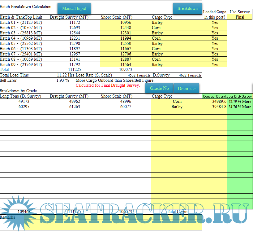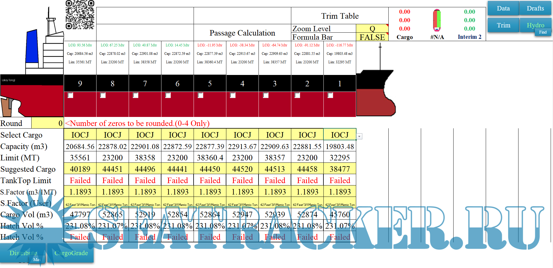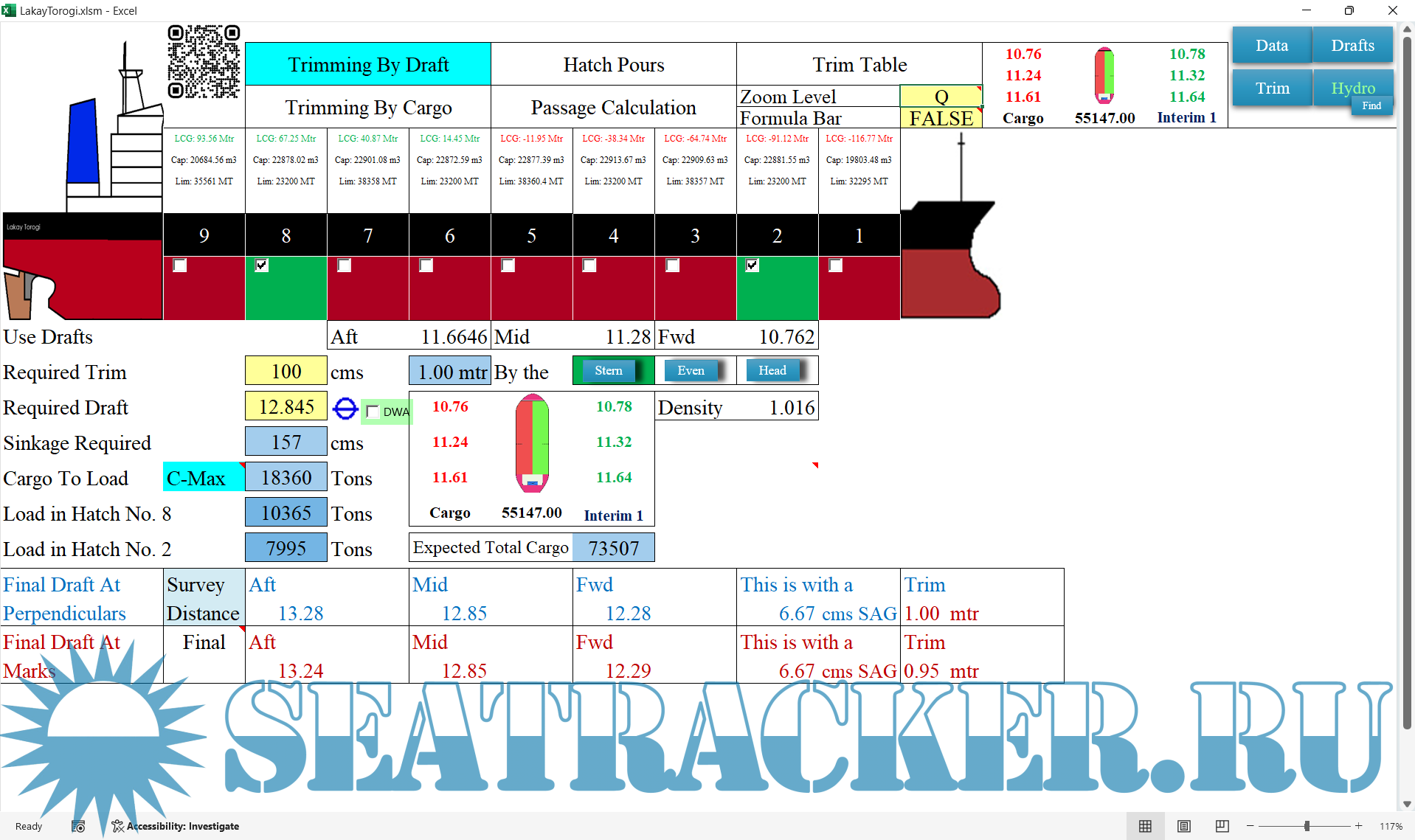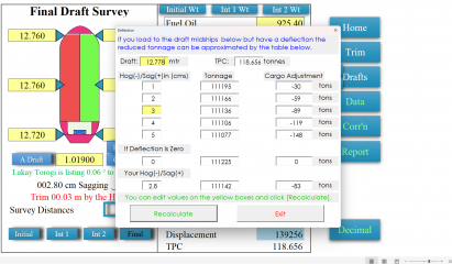 Draft Survey and Trimming Assistant on Excel for Bulk Carriers and General Cargo Version 2.0