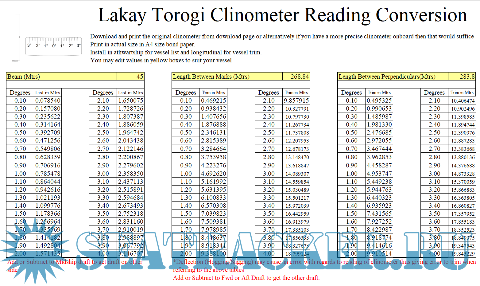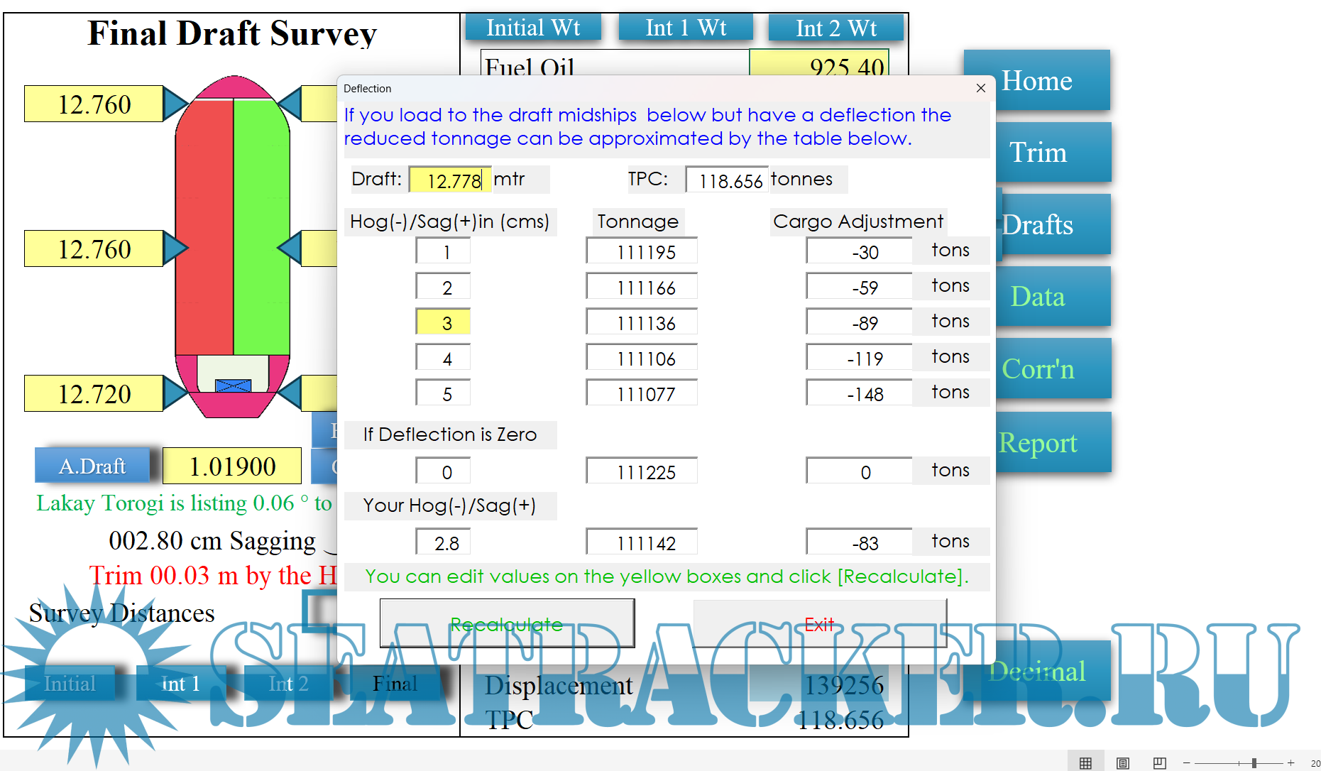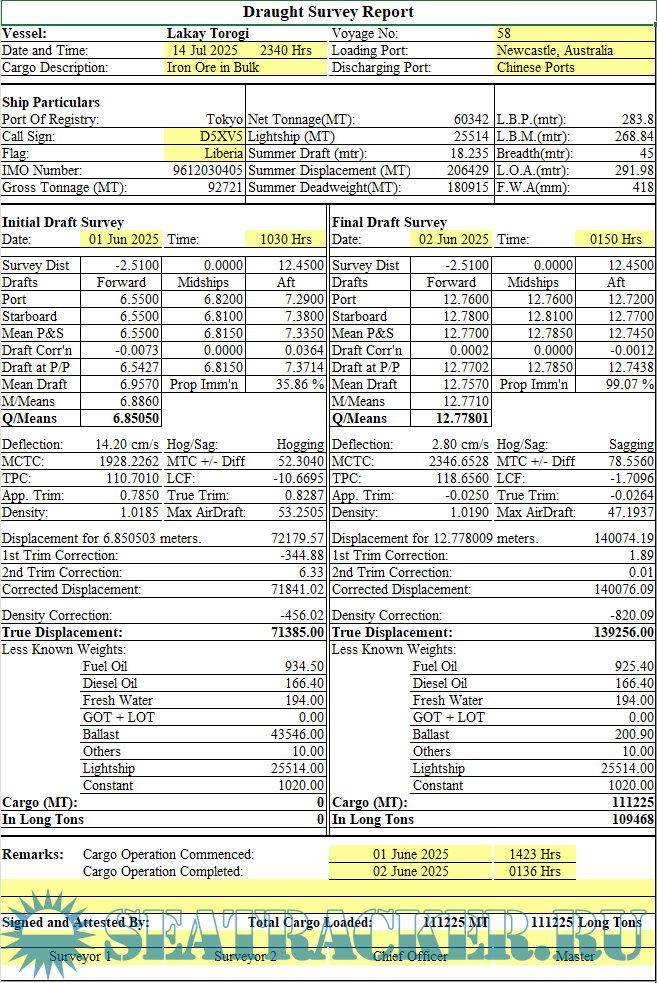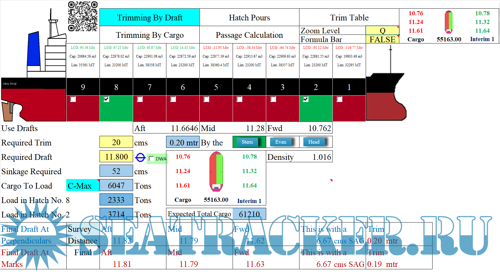 Draft Survey and Trimming Assistant on Excel for Bulk Carriers and General Cargo Version 2.0