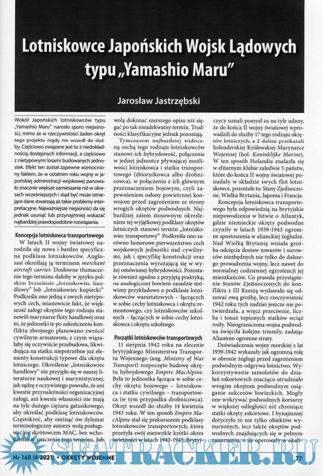 Year: 2021 Language: Polish Author: Okrety Wojenne Genre: Periodical (Magazine) Edition: 2021-04 Format: PDF Quality: eBook Pages count: 107 Description: Военно-морской журнал, который освещает вопросы состояния мирового военного флота, есть исторические очерки. Издаётся с 1992 года