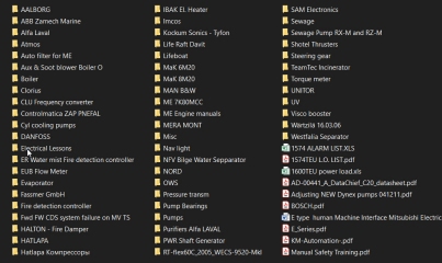 Year: 2000s Language: English, Multilingual Author: Various Genre: Instruction Manual Publisher: Various Format: PDF, DOC, DWG, EXE, HTML, JPEG, PPT, XLS, Other Quality: Scanned pages, eBooks Pages count: 10000+ Description: The collection is a structured set of technical documentation covering shipboard machinery and onboard systems used on sea and river vessels. The materials are intended for marine engineers, electro-technical officers, motormen, service technicians, and maritime students. All documents are organized for practical use during operation, maintenance, troubleshooting, and repair of ship equipment. The collection includes operational and service manuals for main and auxiliary diesel engines, including both two-stroke and four-stroke engine types from manufacturers such as MAN B&W, RT-flex, MaK, and others. The documentation contains engine start-up and shutdown procedures, operating modes, monitoring parameters, permissible operating limits, troubleshooting instructions, and maintenance procedures. A separate section covers boiler plants, steam systems, and heat exchange equipment. The manuals include instructions for safe boiler operation, fuel and air regulation, pressure and temperature monitoring, cleaning and blowdown procedures, and scheduled maintenance routines. Steam line diagrams, fuel supply layouts, and auxiliary boiler equipment schematics are also included. The collection contains extensive documentation for pump systems used onboard. Manuals are provided for fuel pumps, lubrication oil pumps, ballast pumps, fire pumps, sanitary pumps, and cooling water pumps. The documents describe pump construction, operating parameters, installation diagrams, disassembly and assembly procedures, adjustment methods, and replacement of wear components. Documentation for air compressors and air preparation systems is also included. Materials related to purification and separation systems from manufacturers such as Alfa Laval and similar suppliers are included. These documents describe the operating principles of fuel and lubricating oil separators, adjustment of cleaning cycles, dismantling procedures, maintenance instructions, and common fault diagnostics. Additional info: Comprehensive set of technical manuals, datasheets, diagrams, and service documentation for marine engines, boilers, pumps, purifiers, fire detection, and automation systems from multiple manufacturers including MAN B&W, RT-flex, MaK, Alfa Laval, ABB, Danfoss, Clorius, IBAK, HATLAPA, and more.