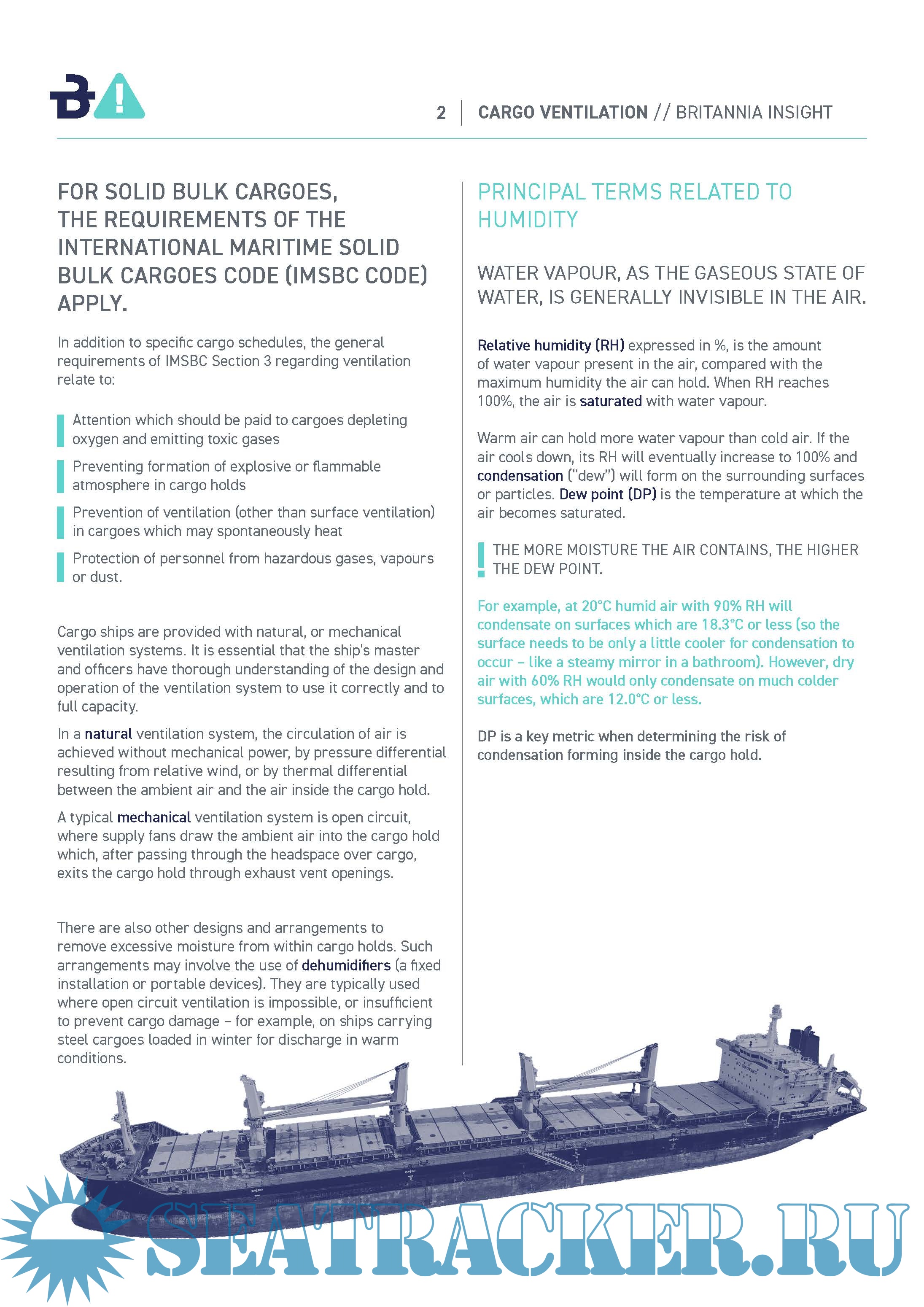 Year: 2025 Language: English Author: Britannia P&I Club Genre: Practical Guide Publisher: Britannia P&I Club Edition: issue no.13 2025 Format: PDF Quality: eBook Pages count: 8 Description: Loss prevention insight on the Essential Guide to understanding cargo ventilation. Many cargo claims result from moisture damage, occurring due to the development of condensation (“sweat”). Proper ventilation is instrumental in preventing the deterioration of cargo, by removing excessive moisture and minimising the formation of sweat. Ventilation is also required for some cargoes to disperse hazardous gases emitted by the cargo, such as carbon dioxide, carbon monoxide and methane.