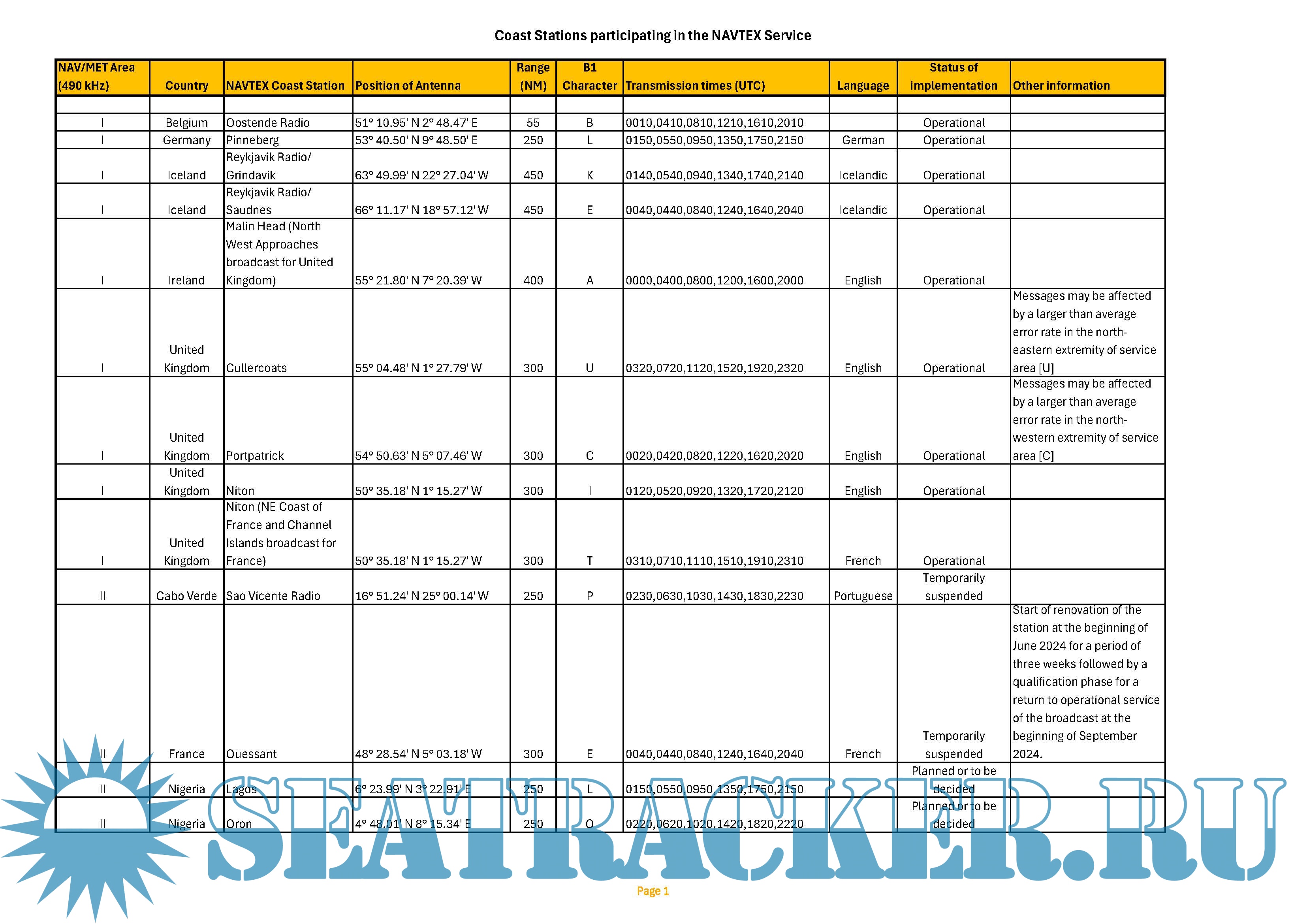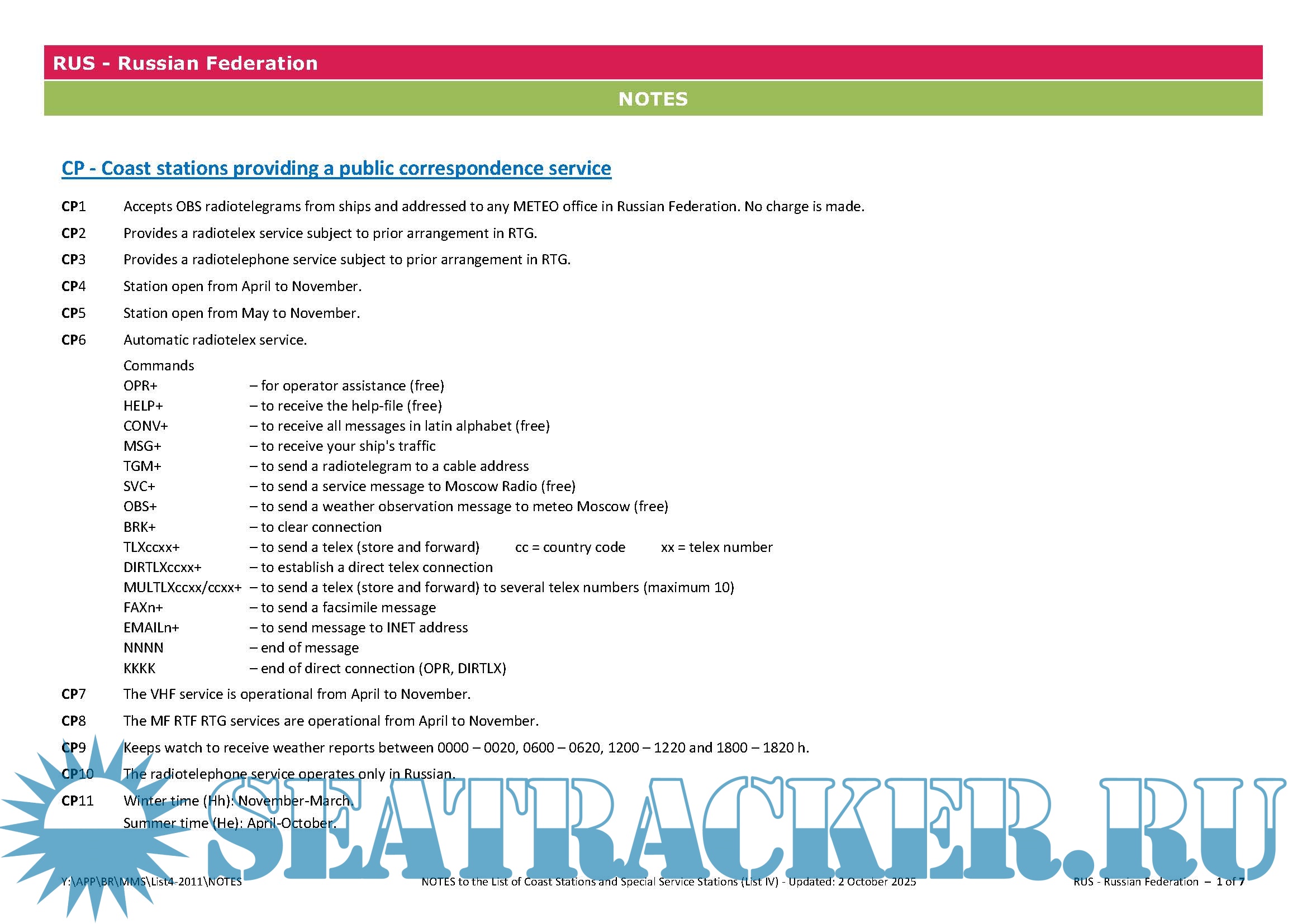 Supplements to List IV - List of Coast Stations and Special Service Stations (Edition of 2021-…