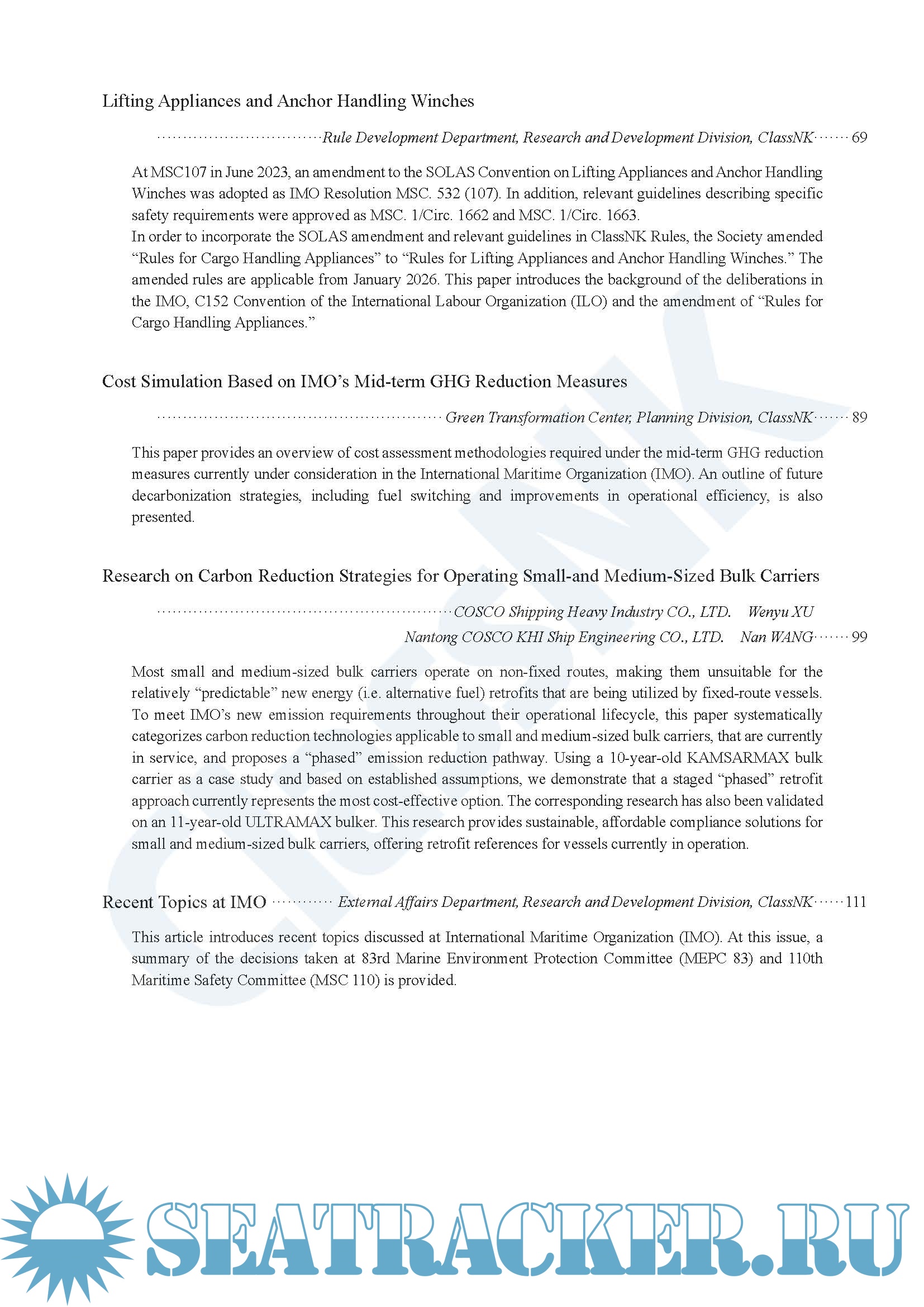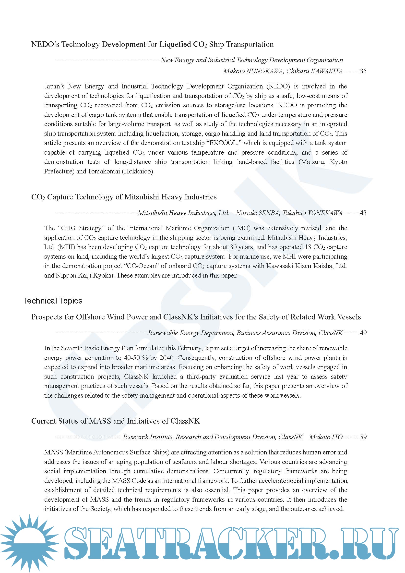 Description: ClassNK Technical Journal is a technical publicity journal which is published with the aim of contributing to