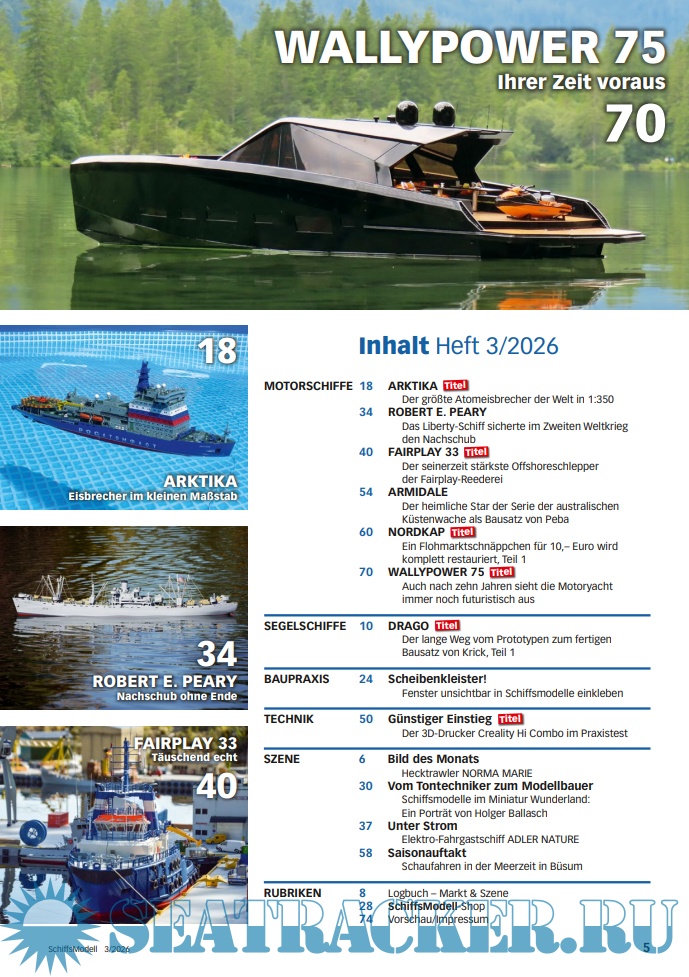 Year: 2026 Language: German Author: Mario Bicher (Redaktor) Genre: Periodical (journal) Edition: 2026-03 Format: PDF Quality: eBook Pages count: 76 Description: SchiffsModell is the magazine for those who enjoy radio controlled and fully functional Modellnachbauten of ships of all kinds.